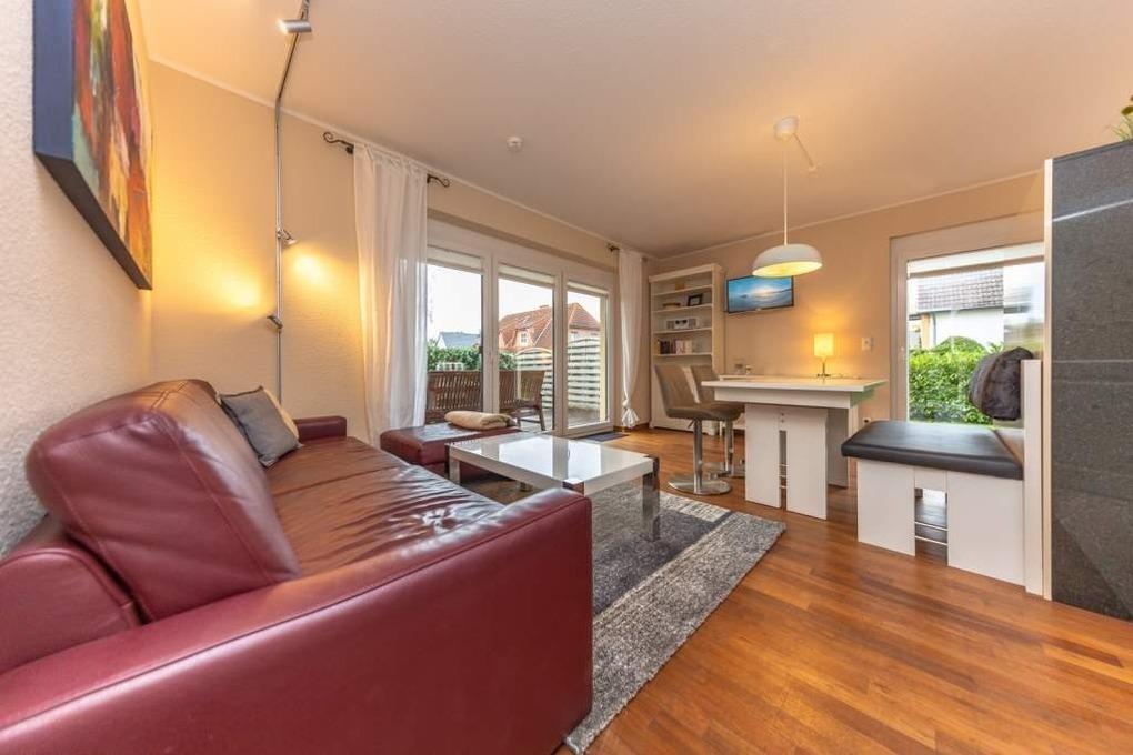 Modern und komfortabel präsentiert sich diese wunderschöne 3-Zimmer Timmendorfer Strand Ferienwohnung im Erdgeschoss mit Terrasse und eingezäuntem Garten. Sie ist für 4 Personen ausgestattet. Der offene Wohn- und Essbereich verfügt über eine komfortable Couchgarnitur, 55 Zoll Flachbild-TV, Hifi-Anlage und gemütliche Essecke. Die komplett eingerichtete, offene Einbauküche lässt keine Wünsche offen. Sie ist u.a. mit Backofen, Induktionsherd und Geschirrspüler ausgestattet.
