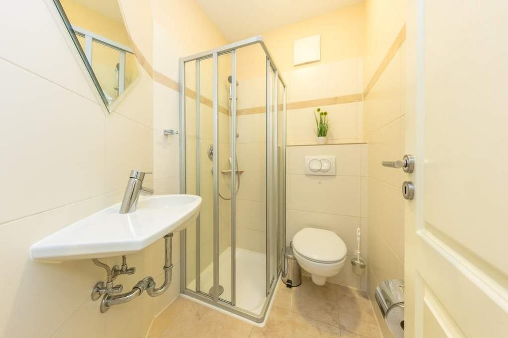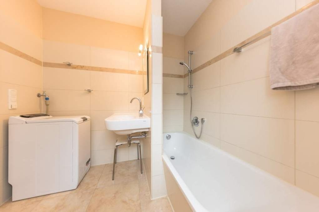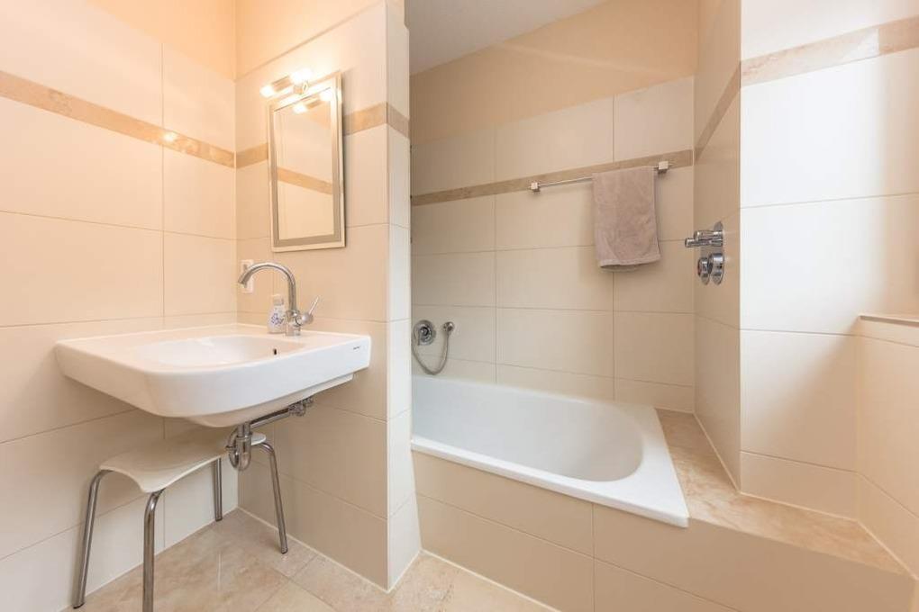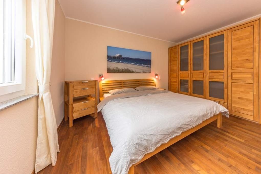 Das Schlafzimmer I ist mit einem Doppelbett (180x200cm) und einem großen Kleiderschrank eingerichtet. In dem Schlafzimmer II steht Ihnen ein Etagenbett (Oben: 70x200cm; Unten: 100x200cm) für die dritte und vierte Person zur Verfügung. Ebenso bietet Ihnen dieses Appartement zwei Badezimmer . Das Badezimmer I ist mit einer Badewanne mit Duschfunktion, einem WC und einer Waschmaschine ausgestattet. Zudem verfügt das Badezimmer II über ein WC und eine Dusche.