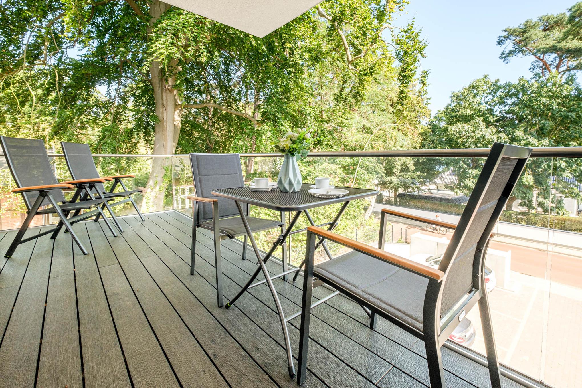 Abgerundet wird diese Ferienunterkunft durch einen schönen, möblierten Balkon in Nord-/Nord-Ost Ausrichtung - Meerblick inklusive, Träumen ausdrücklich erwünscht!