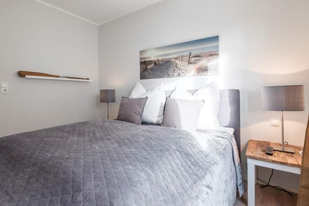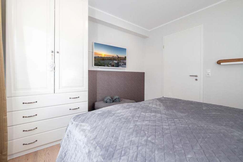 Das Elternschlafzimmer dieser Ferienwohnung ist mit einem Doppelbett (160x200cm) ausgestattet und verfügt über einen 2. Flatscreen-TV. Das zweite separate Schlafzimmer verfügt über 2 Einzelbetten. Der möblierte Balkon in Ost-Lage mit Blick Richtung Ostsee rundet dieses wunderschöne Timmendorfer Strand Urlaubsdomizil ab.