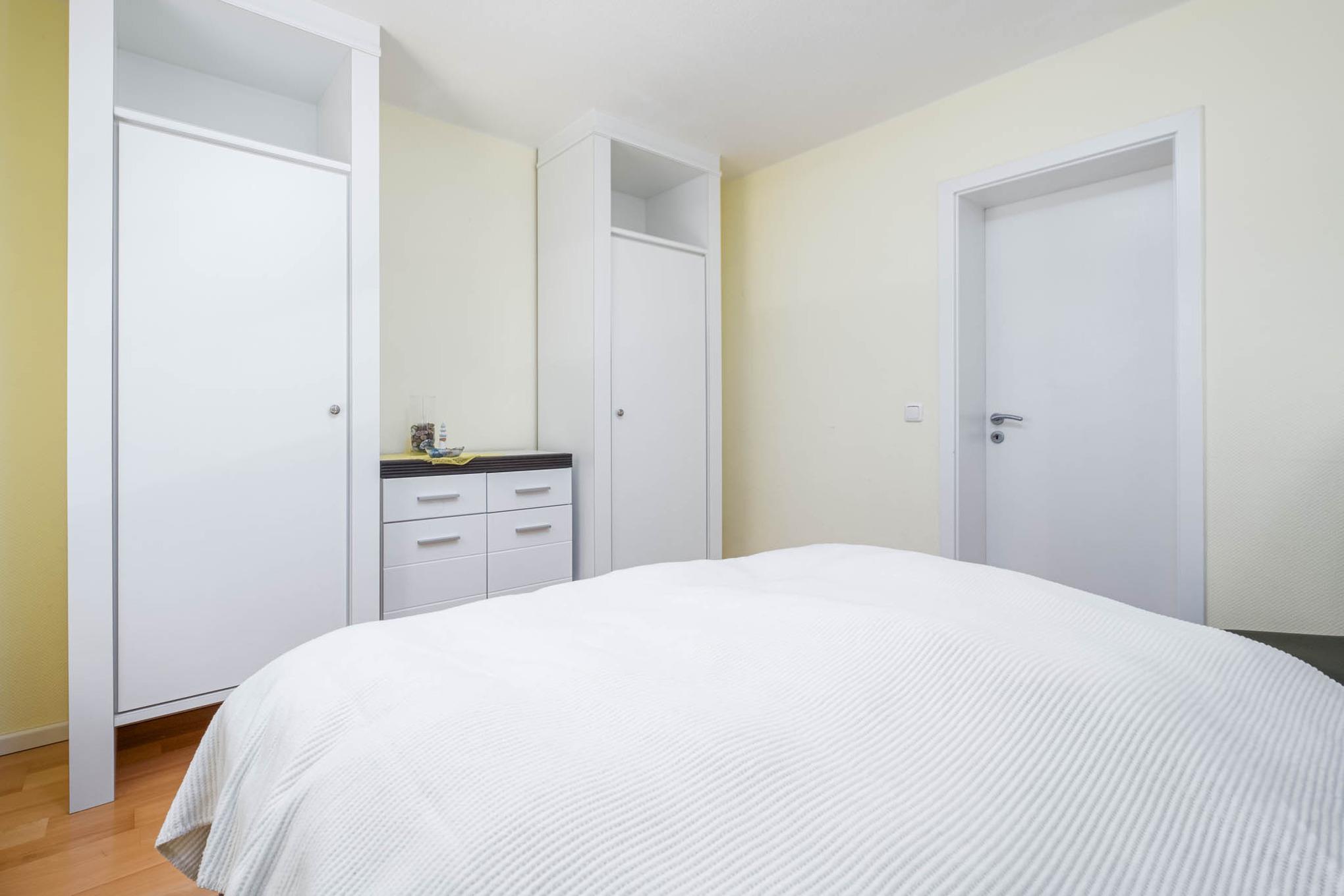 Das separate Schlafzimmer verfügt über ein Boxspringbett (160x200cm) und Außenjalousien. Um Ihnen einen erholsamen Schlaf zu garantieren, lassen sich die Schlafräume der Ferienwohnung verdunkeln.
