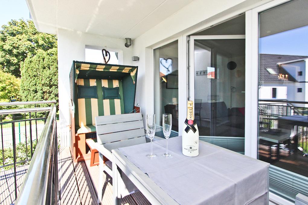 Im Abstellraum innerhalb des Appartements befindet sich eine Waschmaschine sowie ein Wäschetrockner. Ein Kinderreisebett und ein Hochstuhl stehen Ihnen in dieser Ferienwohnung kostenfrei zur Verfügung. In dieser Ferienwohnung steht Ihnen ein kostenloser Internetanschluss über WLAN zur Verfügung. Über das Haustelefon können Sie kostenlos ins deutsche Festnetz telefonieren. Ein PKW- Stellplatz ist direkt am Haus. Auf der Loggia ist ein Strandkorb vorhanden. Es handelt sich um ein Nichtraucher-Appartement, Haustiere sind nicht gestattet.