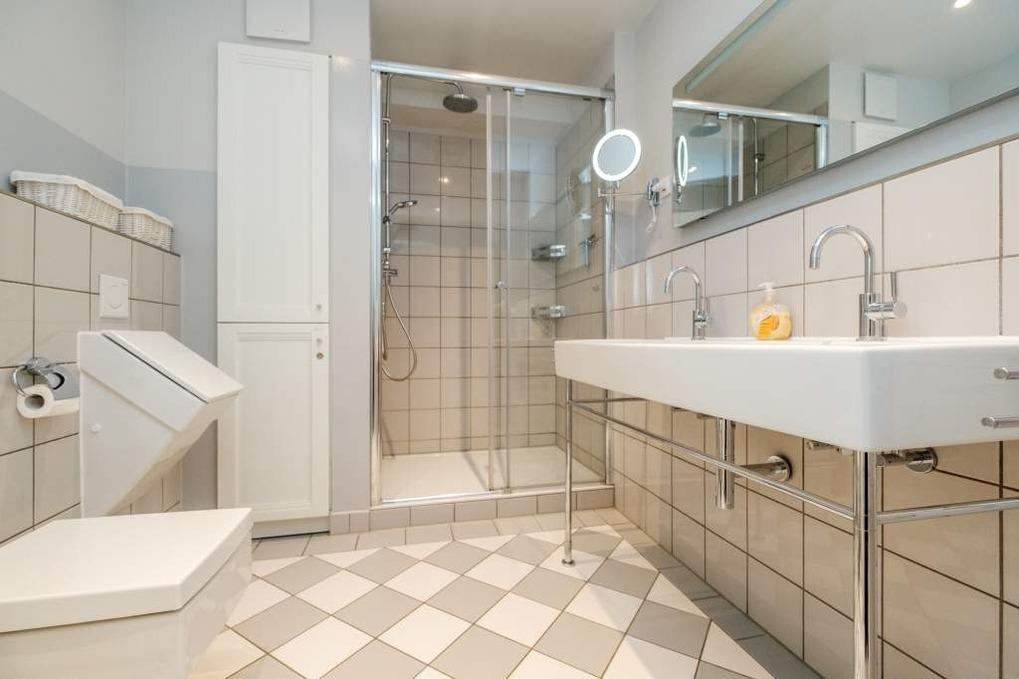 Das Appartement verfügt über einen ebenerdigen Zugang vom Parkplatz bis zur Wohnung. Außerdem erreichen Sie mindestens ein Schlafzimmer, den Wohnbereich und ein Badezimmer ebenerdig. Die Ferienwohnung verfügt zudem über eine bodengleiche Dusche oder über eine Dusche mit niedrigem Einstieg.