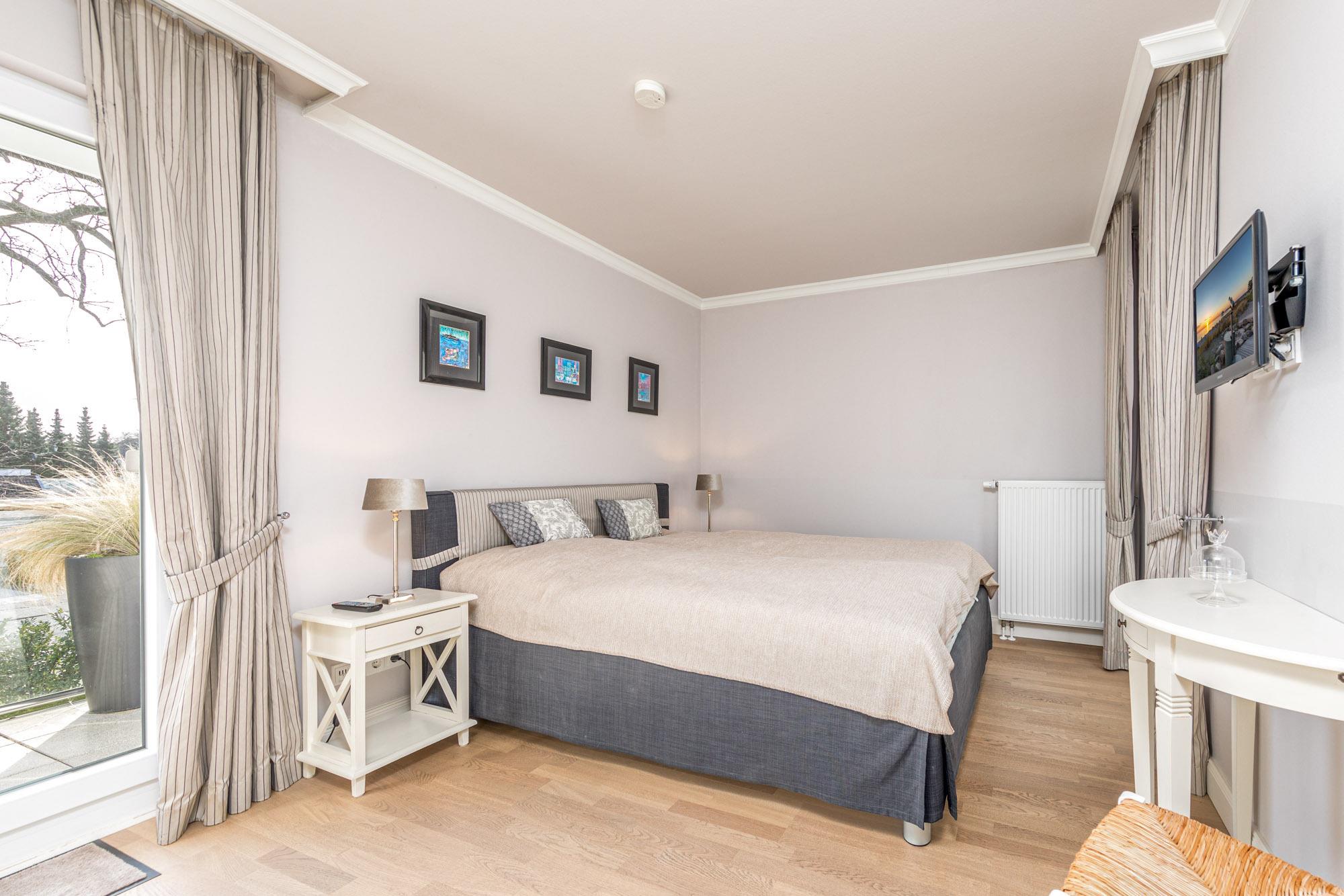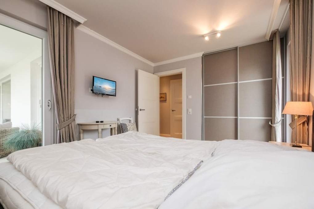 Die Timmendorfer Strand Ferienwohnung verfügt über 2 separate Schlafzimmer jeweils mit Doppelbett (160x200cm) und zusätzlichem Flatscreen-TV. Das Badezimmer ist mit einer Dusche ausgestattet. Die 2 möblierten, großzügigen Balkone in Süd-West-Lage bieten Platz für die ganze Familie und runden dieses wunderschöne Urlaubsdomizil im Herzen von Timmendorfer Strand ab.