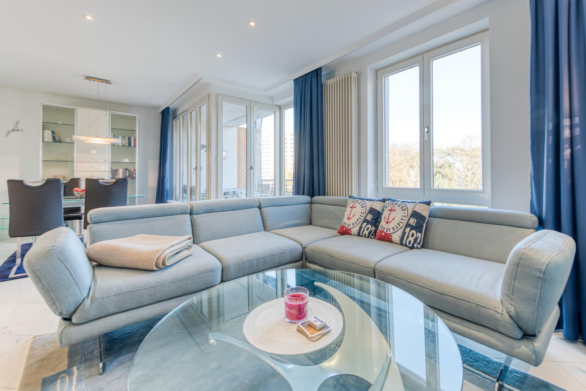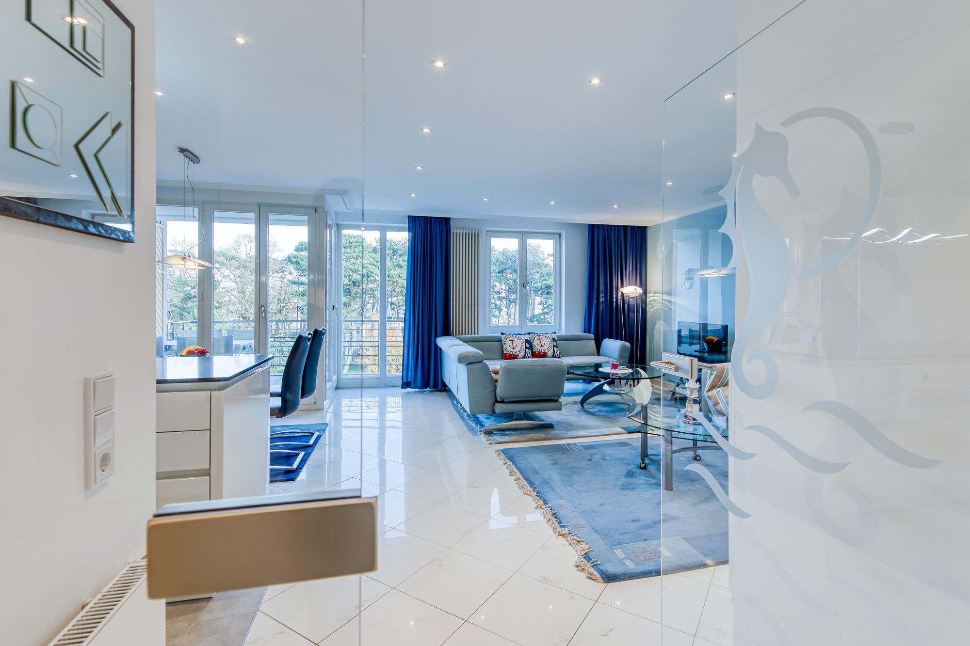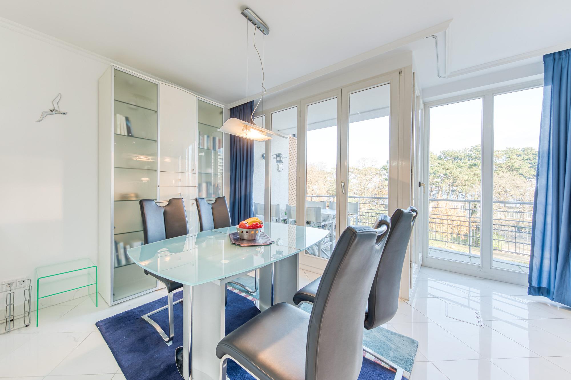 Moderne Ferienwohnung mit Meerblick, zwei Balkonen und Tiefgaragenstellplatz direkt an der Kurpromenade in Timmendorfer Strand.
