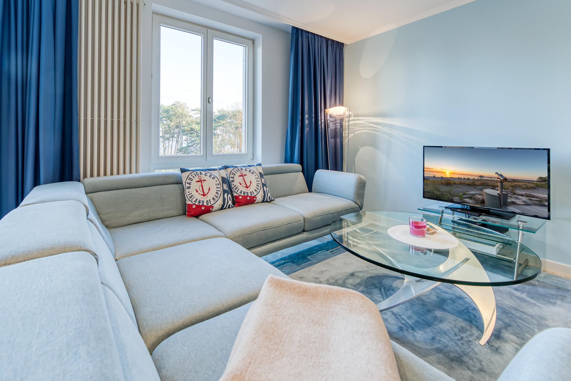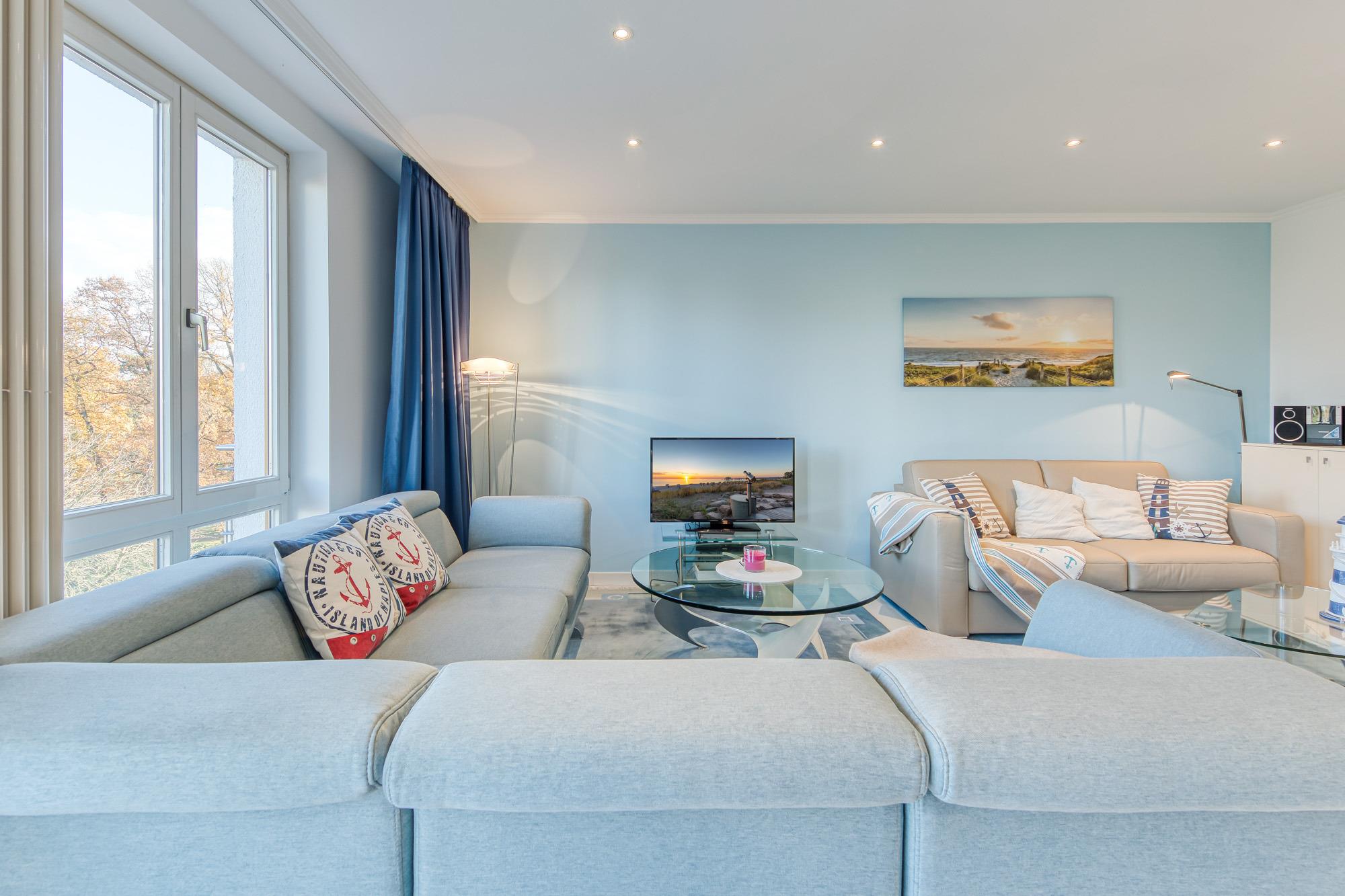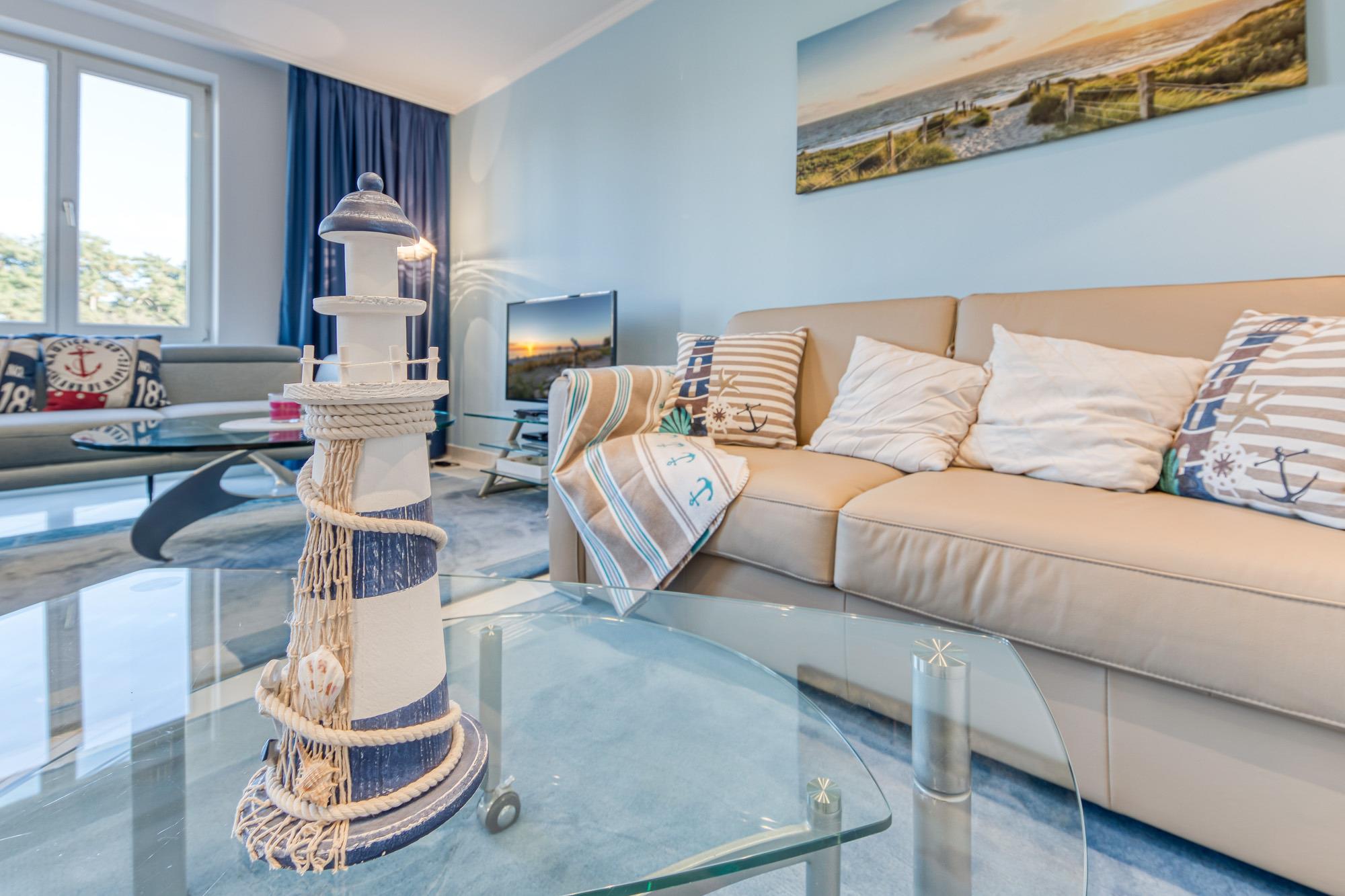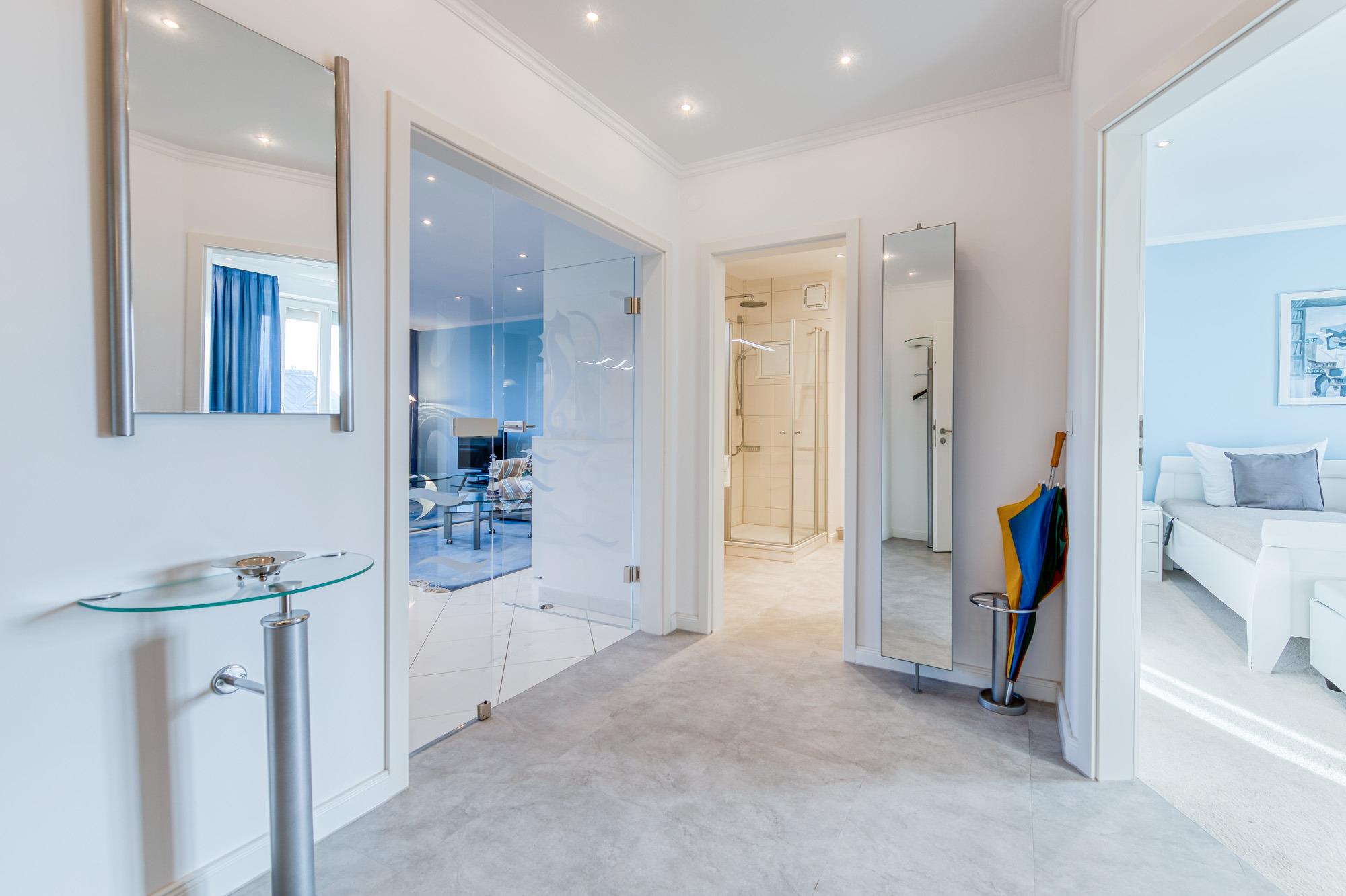 Moderne Ferienwohnung mit Meerblick, zwei Balkonen und Tiefgaragenstellplatz direkt an der Kurpromenade in Timmendorfer Strand.