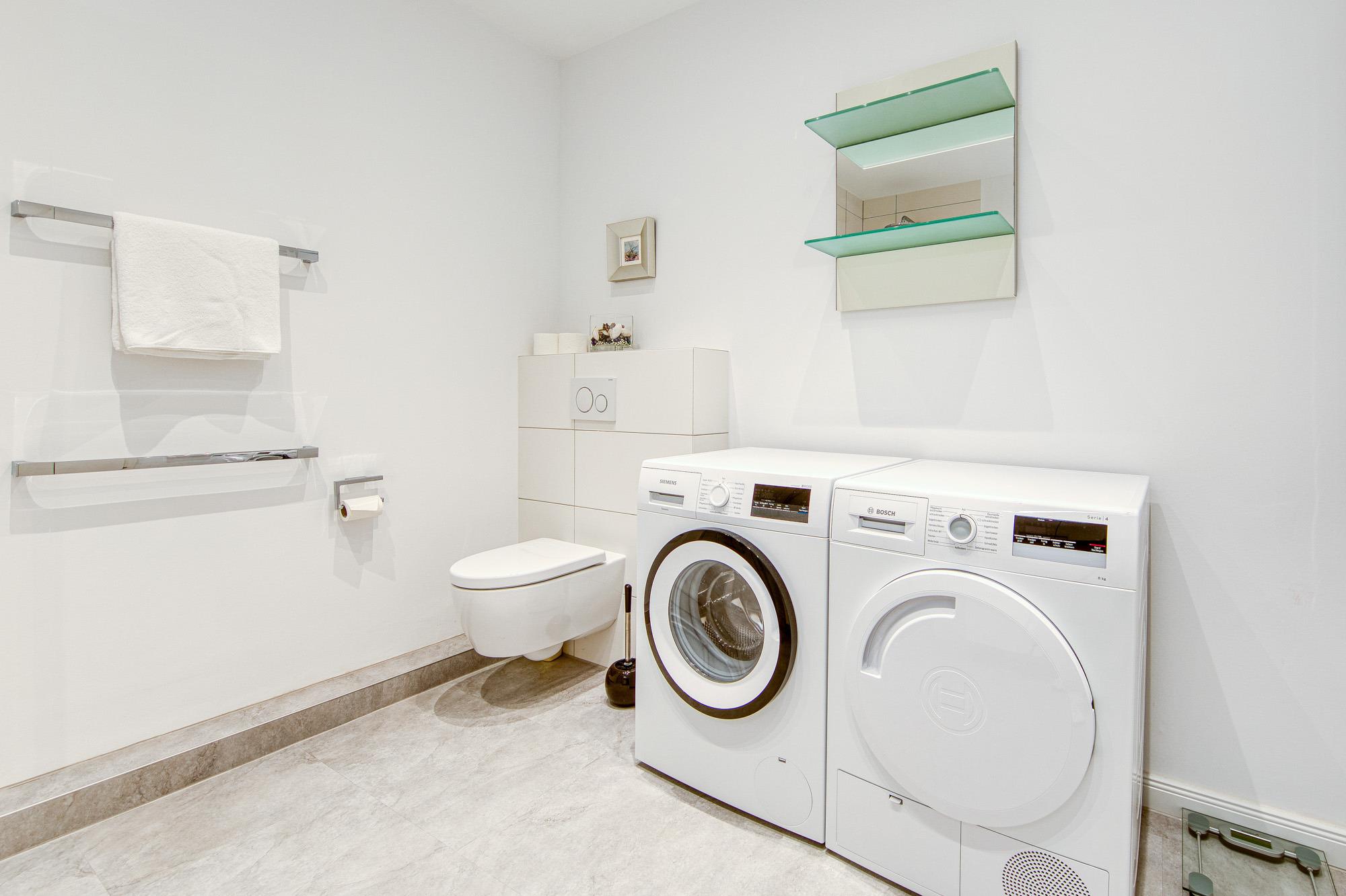 Zusätzlich zur Waschmaschine und Trockner im Appartement befinden sich im Keller eine Waschmaschine und Trockner (Münzautomaten) zur Nutzung.