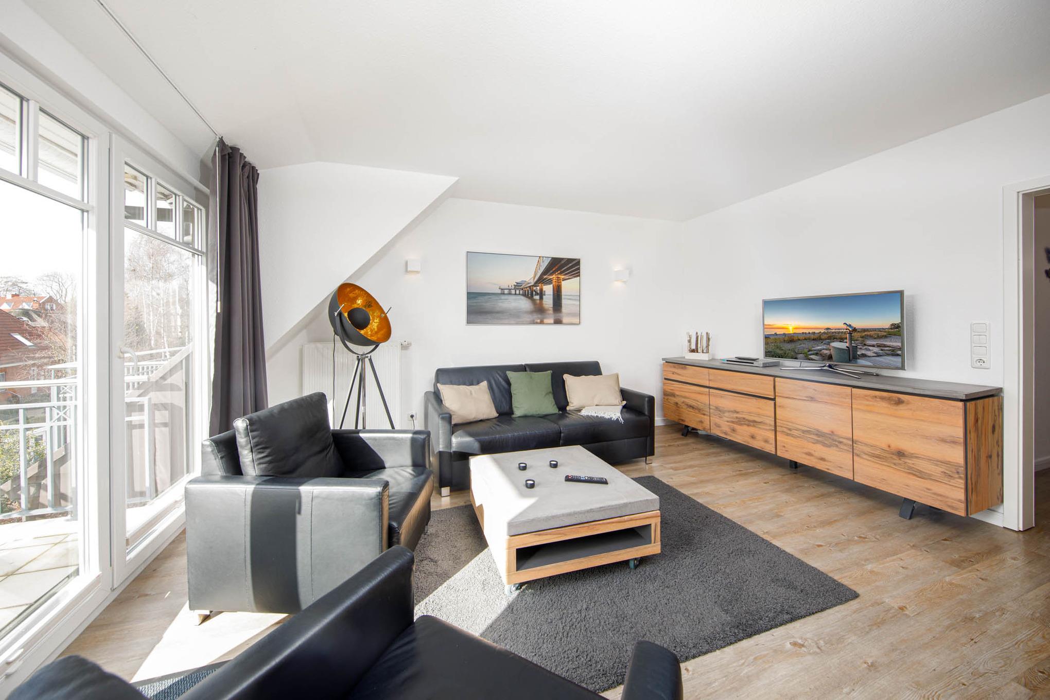 Moderne 3-Zimmer-Ferienwohnung mit Balkon, Strandkorb, WLAN und Parkplatz in Timmendorfer Strand.