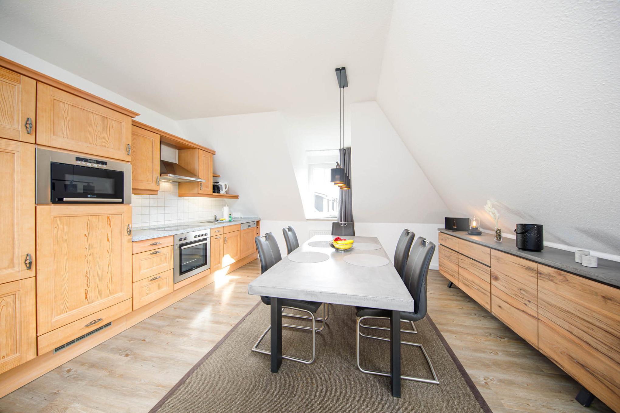 Bei der Timmendorfer Strand Ferienwohnung Nr. 5 handelt es sich um ein schönes 3-Zimmer-Appartement in der 1. Etage mit möbliertem Balkon in Süd-West-Lage und Parkettfußboden im Wohnbereich. Das Appartement erstreckt sich über eine Wohnfläche von 70qm und ist für 4 Personen geeignet. Die Ferienwohnung Timmendorfer Strand verfügt über einen Wohnbereich mit Ledercouchgarnitur, Flat Screen TV, Apple TV und Bose SoundTouch Anlage sowie einer gemütlichen Essecke. Die offene, angrenzende Pinienholz-Einbauküche verfügt über Ceranfeld, Backofen, Mikrowelle und Geschirrspüler. Zudem sind alle weiteren, notwendigen Küchenutensilien vorhanden. Das Schlafzimmer I wurde mit einem komfortablen Boxspringbett (180x200cm) ausgestattet. Das Schlafzimmer II verfügt über 2 Einzelbetten (90x200cm), darüber hinaus steht Ihnen in jedem Schlafzimmer ein zusätzlicher Flat Screen TV zur Verfügung. Ein Bad mit ebenerdiger Dusche und Bidet ist vorhanden. Zusätzlich steht Ihnen auch ein Gäste-WC zur Verfügung.