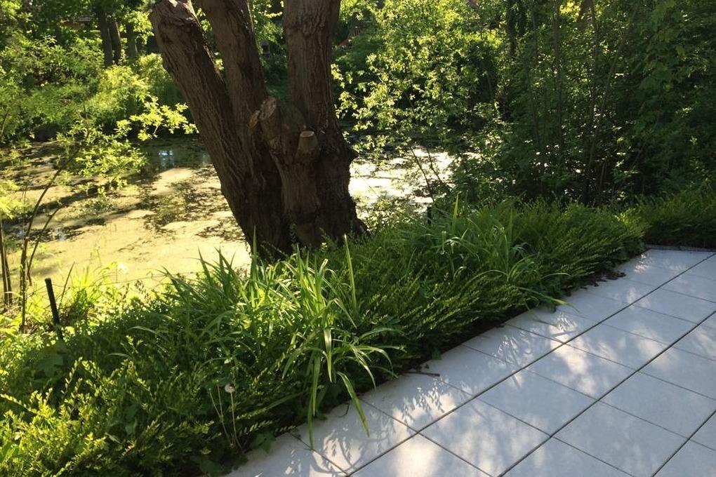 Die große, möblierte Terrasse mit Sonnenschirm und einem herrlichen Blick auf den Teich und Sonne von mittags bis zum Sonnenuntergang rundet dieses wunderschöne Urlaubsdomizil in ruhiger und strandnaher Lage ab.