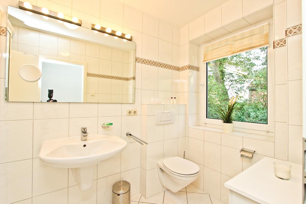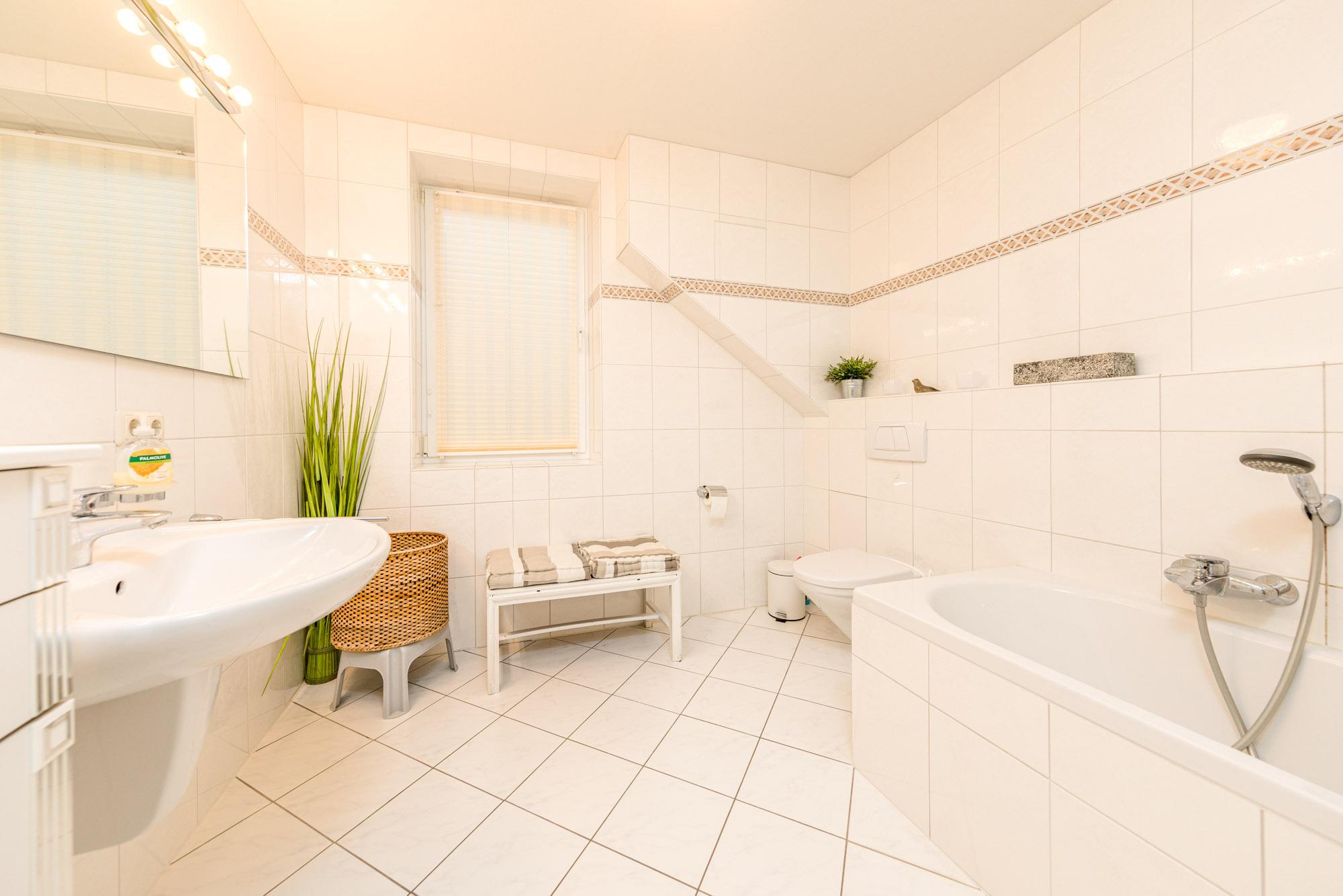 Die Ferienwohnung verfügt über 2 Badezimmer. Das eine Badezimmer ist mit einer Dusche eingerichtet, das andere mit einer Badewanne.