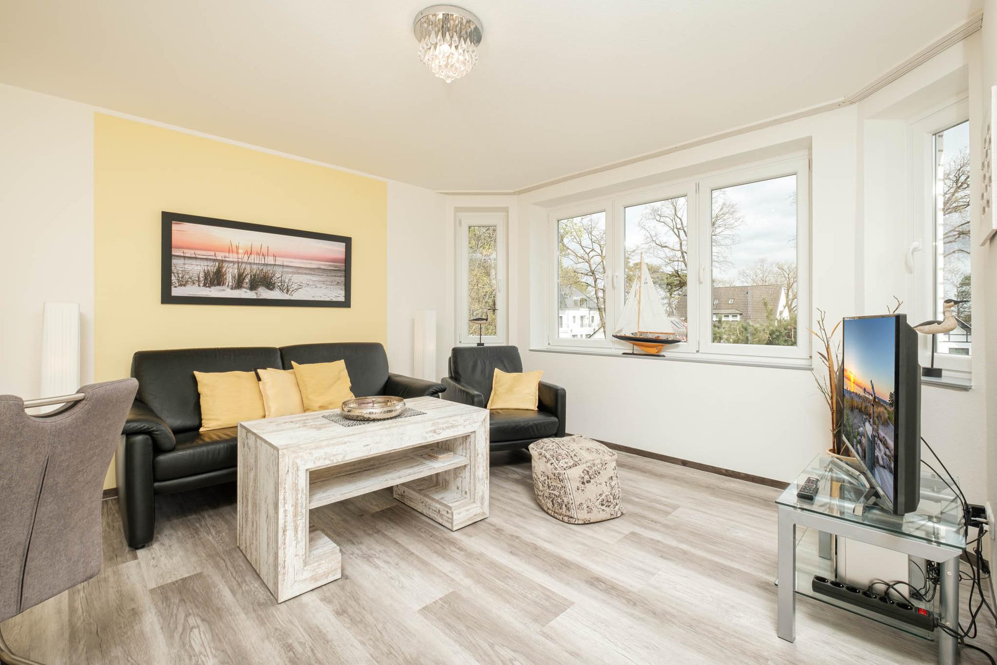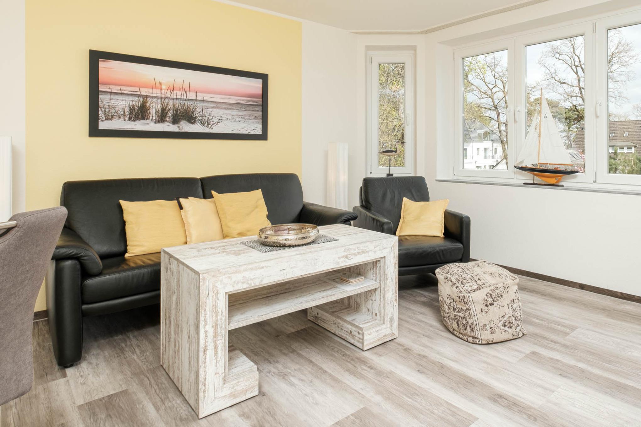 Gemütliche 3-Zimmer-Ferienwohnung mit Meerblick und Balkon in Timmendorfer Strand, nur wenige Schritte vom Sandstrand entfernt.