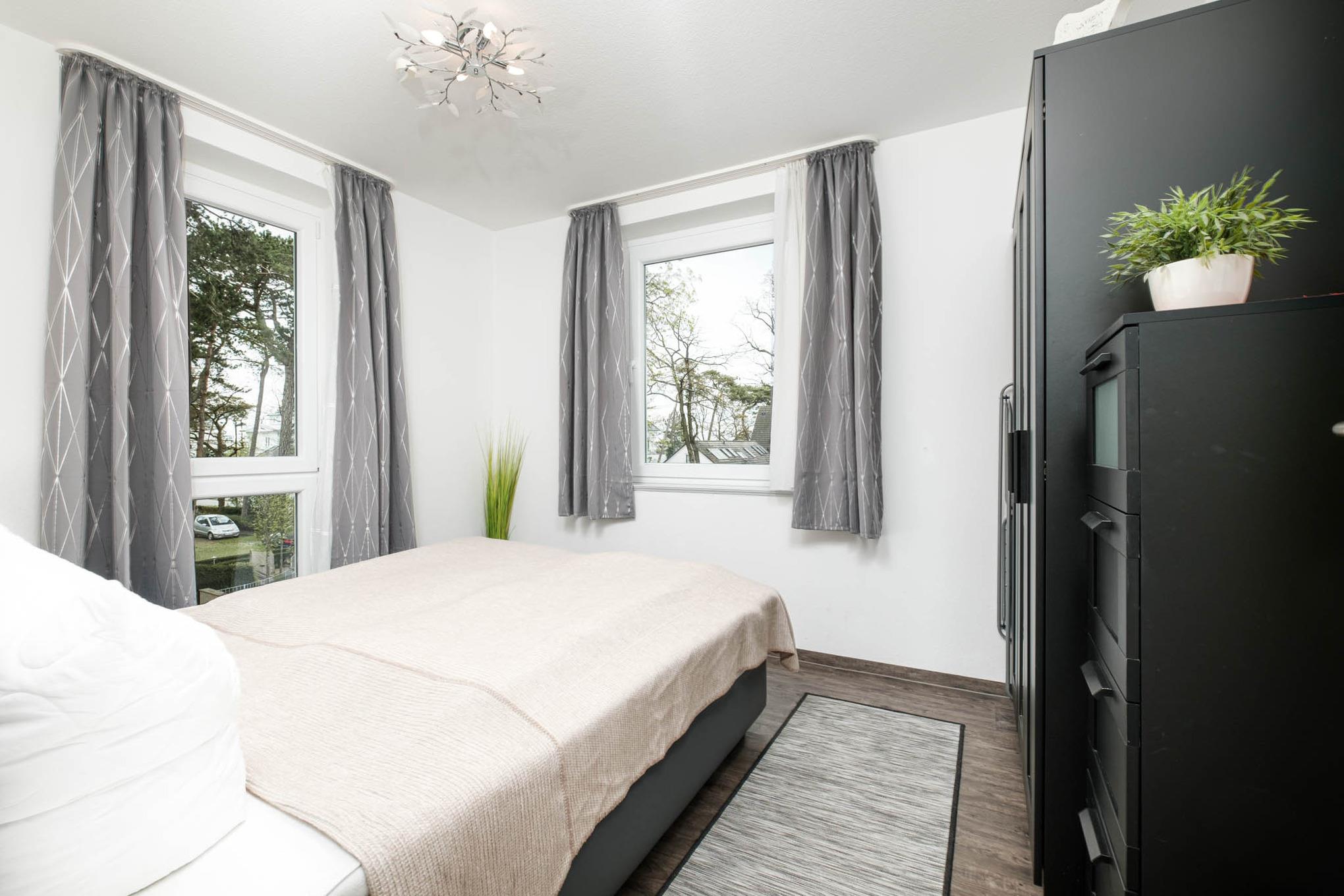 Das separate Elternschlafzimmer dieser Ferienwohnung ist mit einem Doppelbett (160x200cm) ausgestattet. Das zweite Schlafzimmer verfügt über ein Einzelbett (90x200cm). Der mit Strandkorb und zur Morgensonnenseite ausgelegte Balkon rundet dieses schöne Urlaubsdomizil an der Ostsee ab.