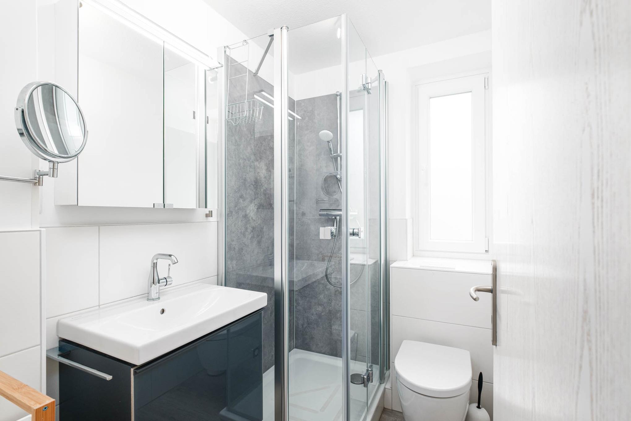 Ein Pkw-Stellplatz ist bei diesem Appartement inklusive und steht am Haus für Sie bereit. Zwei Fahrräder können Sie in einem abgeschlossenen Bereich unterstellen. Ein drittes Rad wäre in den Außenfahrradständern abzustellen.