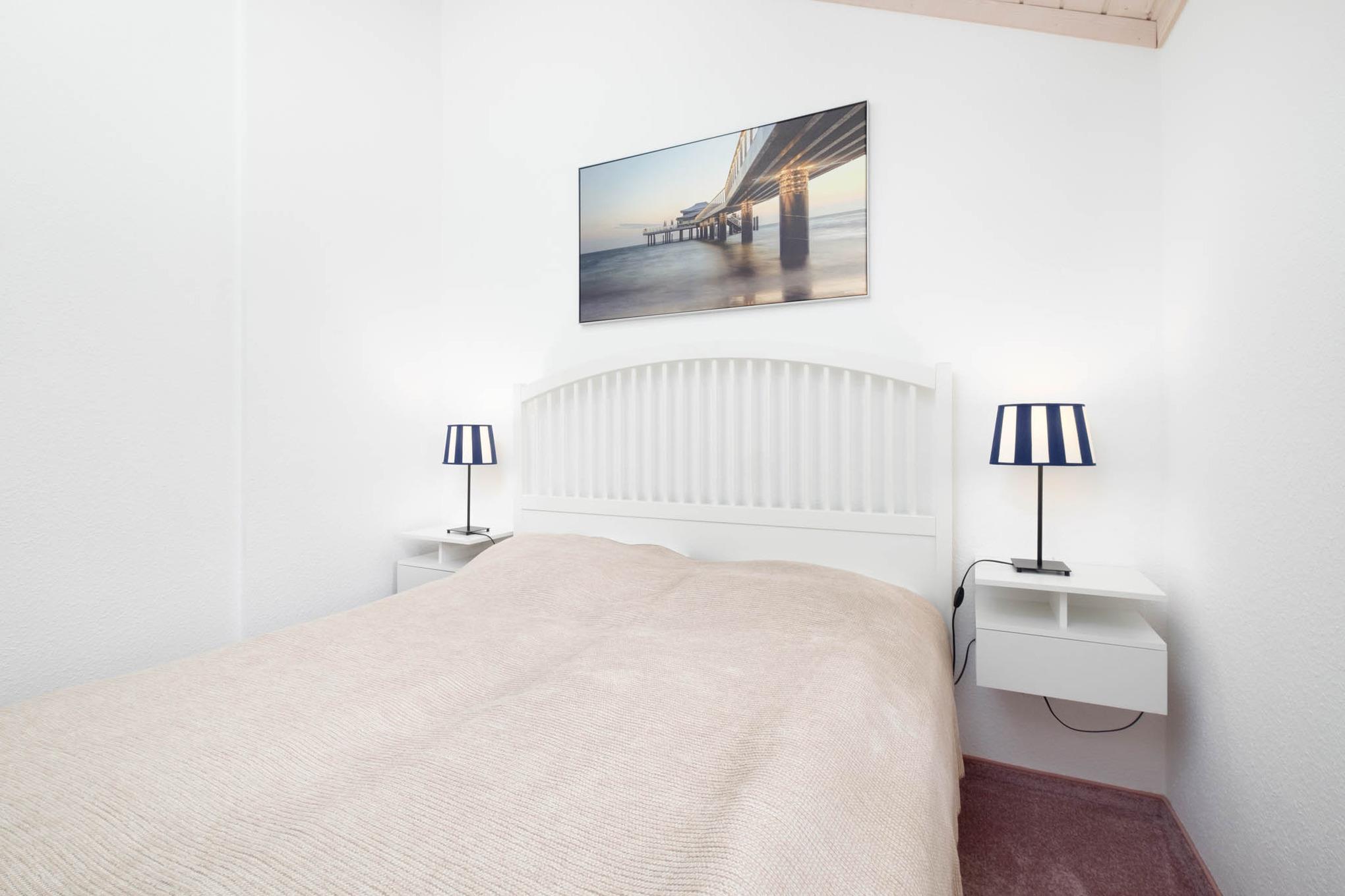Die beiden separaten Schlafzimmer bieten jeweils Platz für 2 Personen. Das Schlafzimmer I ist mit einem Doppelbett ausgestattet. Das Schlafzimmer II verfügt über 2 Einzelbetten. Im Badezimmer erwartet Sie eine große, bodengleiche Dusche.
