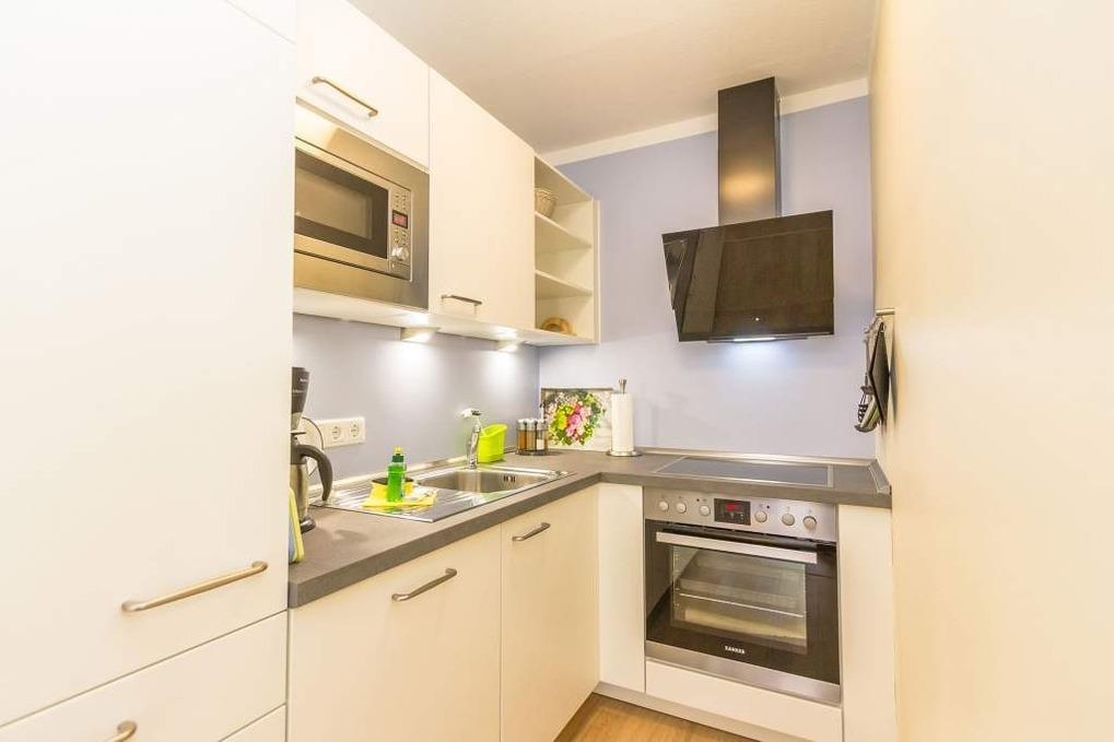 Mit dem Appartement Nr. 1 erwartet Sie eine 2-Zimmer-Ferienwohnung mit separatem, ebenerdigem Eingang und sonniger Terrasse in Süd-Lage. Die Timmendorfer Strand Ferienwohnung verfügt über eine komplett ausgestattete Küche mit 4-Platten-Herd, Backofen, Geschirrspüler und Mikrowelle. Das separate Schlafzimmer ist mit einem Doppelbett (180x200cm) in Komforthöhe und einem TV eingerichtet. Im Wohnzimmer befindet sich eine Couch, die bei Bedarf zur Doppelschlafcouch ausgezogen werden kann. Das Badezimmer der Ferienwohnung Timmendorfer Strand verfügt über einer extra großen Dusche. Genießen Sie das maritime, geschmackvolle Ambiente dieser Komfort-Ferienwohnung im Gorch-Fock-Park in Timmendorfer Strand an der Ostsee.