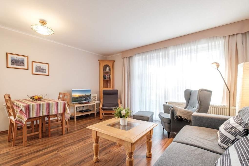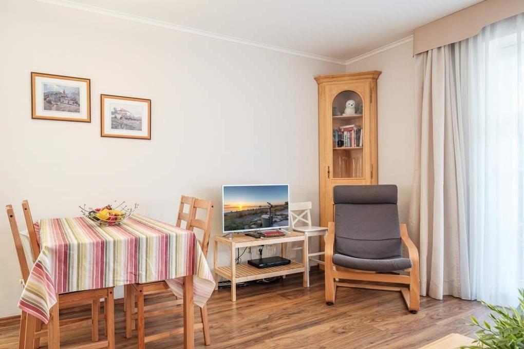In der Timmendorfer Strand Ferienwohnung Nr. 1a erwartet Sie eine moderne 2-Zimmer-Ferienwohnung im Erdgeschoss mit sonniger Terrasse in Süd-West-Lage. Die Timmendorfer Strand Ferienwohnung ist sehr liebevoll eingerichtet und verfügt über eine komplett ausgestattete Küche mit Ceranfeld, Backofen, Geschirrspüler und Mikrowelle. Das separate Schlafzimmer ist mit einem Doppelbett (180x200cm) eingerichtet. Im Wohnzimmer befindet sich eine Couch, die bei Bedarf zur Doppelschlafcouch (Liegefläche 1,40m x 2,00m)ausgezogen werden kann, ein Flatscreen-TV und eine Essecke, die den Übergang zur optisch abgeteilten Einbauküche bildet. Das moderne Badezimmer der Ferienwohnung Timmendorfer Strand verfügt über eine Dusche.