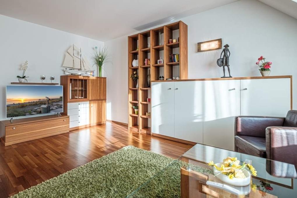In der 2. Etage bieten wir Ihnen ein modernes 2-Zimmer-Appartement für 3 Personen plus Kind an. Diese Timmendorfer Strand Ferienwohnung ist mit einem separatem Schlafzimmer auf der 2. Ebene (über eine Treppe erreichbar) mit Doppelbett (180x200cm), sowie einem Schlafsofa für 1 Kind ausgestattet.