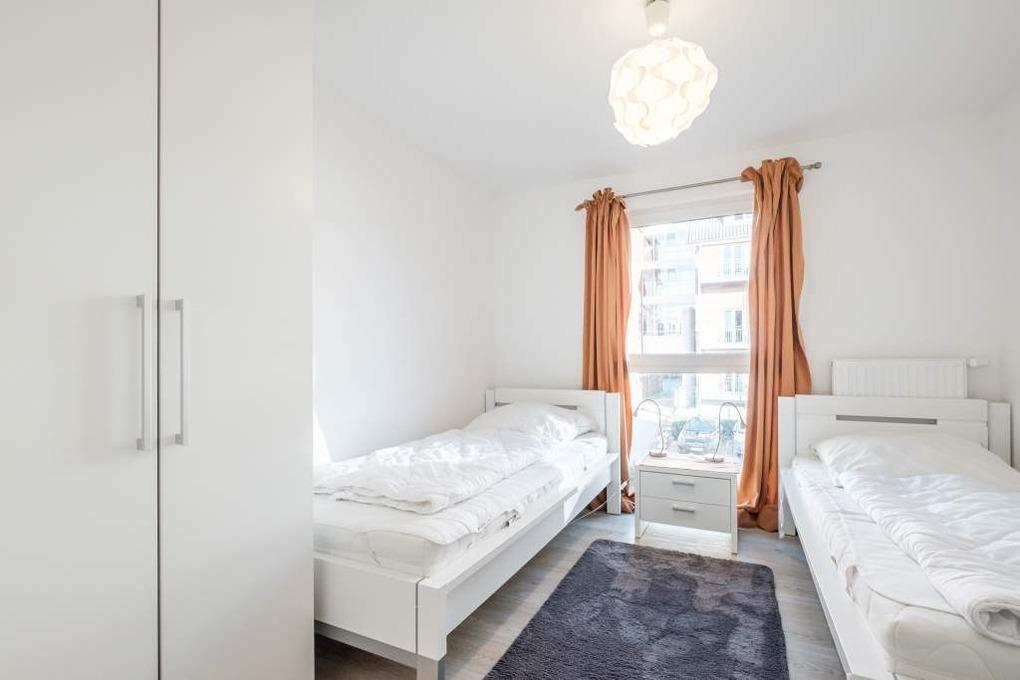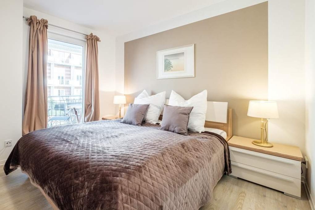 2 separate Schlafzimmer, 1 x mit Doppelbett (180x200cm) und zusätzlichem Flatscreen-TV, 1 x mit 2 Einzelbetten, stehen zur Verfügung. Am Elternschlafzimmer der Ferienwohnung Timmendorfer Strand befindet sich der 2. Balkon.