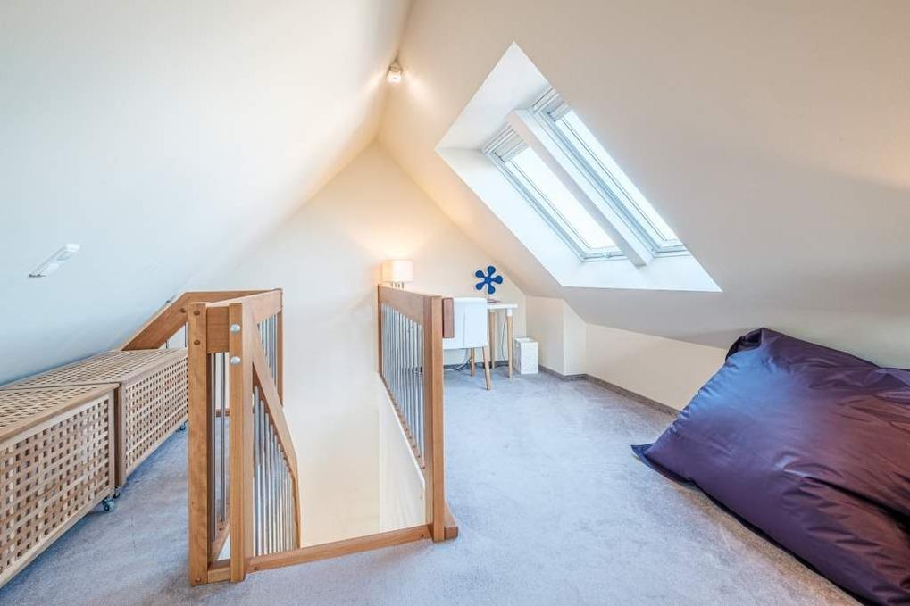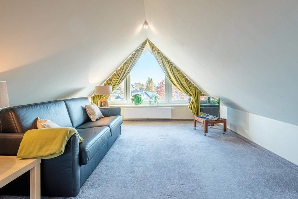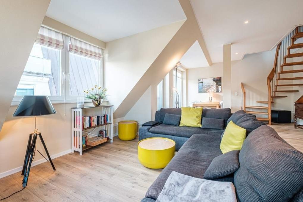 Unter dem Dach des Hauses befindet sich die gemütliche Galerie, die über eine Treppe erreichbar ist. In der gemütlichen Galerie finden Sie eine Schlafcouch für 2 Personen, einen Schreibtisch und einen 2. Flatscreen-TV vor. Der weite Blick über Timmendorfer Strand lädt zum Träumen ein. Dies ist ein ganz besonderer Platz für einen entspannten Urlaub zu jeder Jahreszeit.