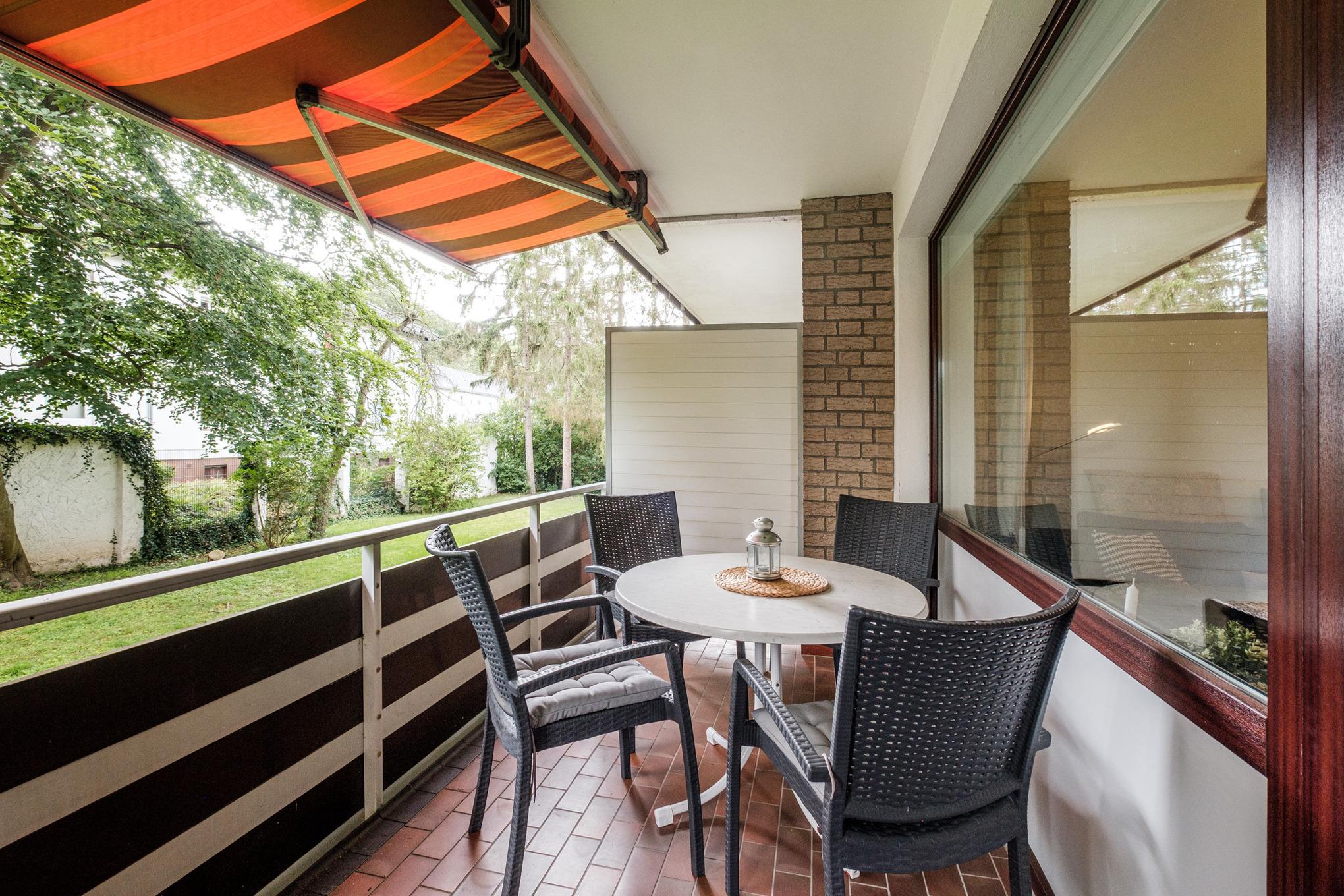 Der möblierte Balkon mit Markise rundet dieses schöne Urlaubsdomizil in Timmendorfer Strand ab. Hier lässt es sich ab Mittags bei gutem Wetter super entspannen!