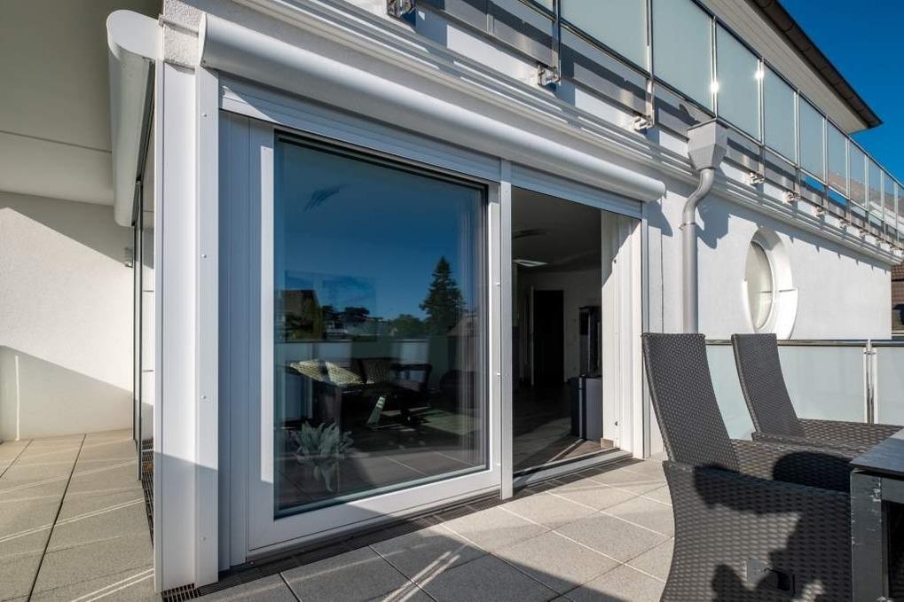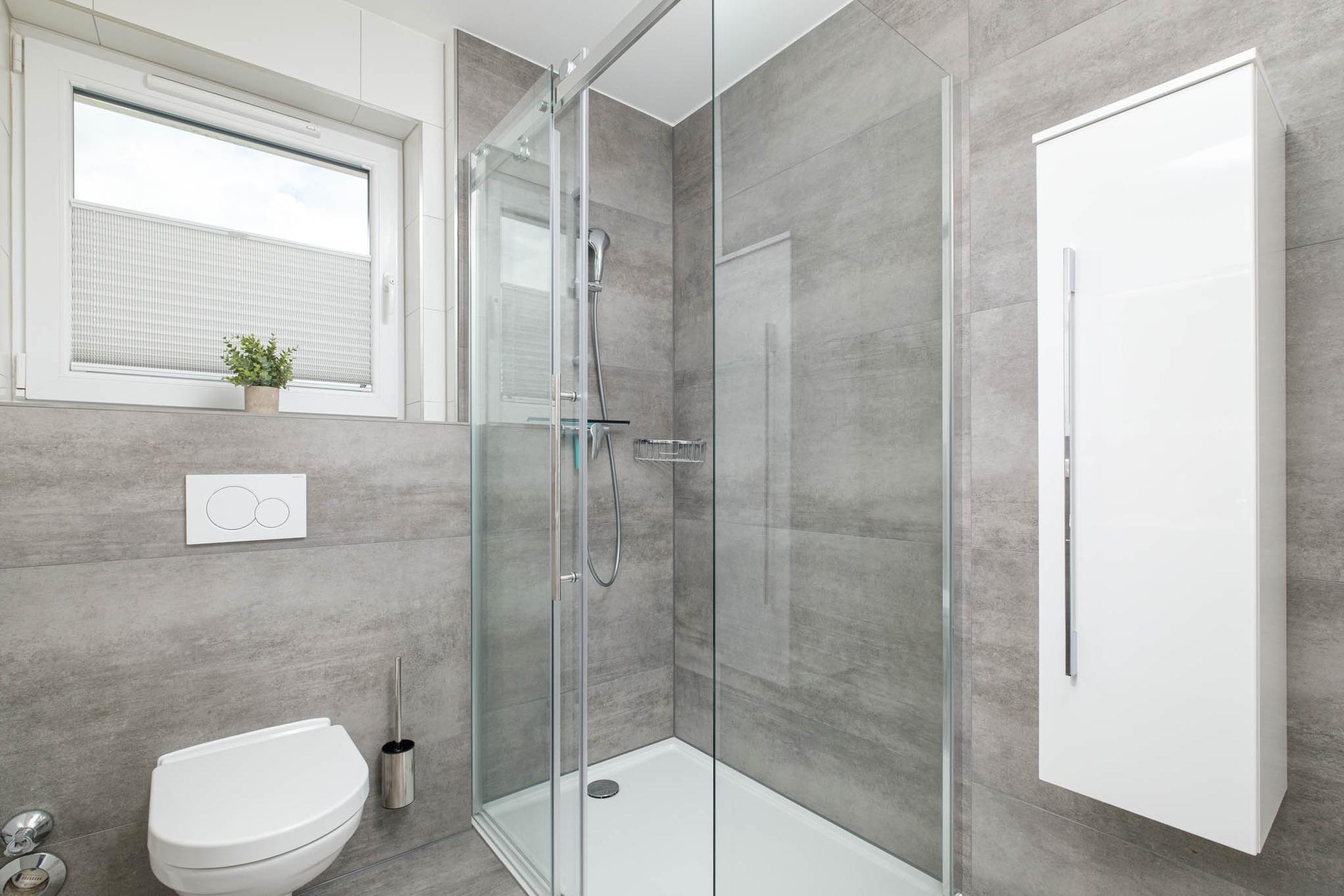 Das Bad ist mit einer modernen Dusche eingerichtet. Ein sonniger Balkon in Süd-/Ostlage mit hochwertigen Gartenmöbeln lädt zum Verweilen und Sonnenbaden ein.