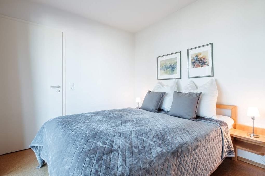 Das Elternschlafzimmer dieser Ferienwohnung ist mit einem Doppelbett (160x200cm) ausgestattet und verfügt über einen 2. Flatscreen-TV. Das zweite separate Schlafzimmer verfügt über 2 Einzelbetten (90x200cm). Um Ihnen einen erholsamen Schlaf zu garantieren, lassen sich die Schlafräume der Ferienwohnung verdunkeln. Der möblierte Balkon in Nord-Ost-Lage mit Blick Richtung Ostsee rundet dieses wunderschöne Urlaubsdomizil ab.