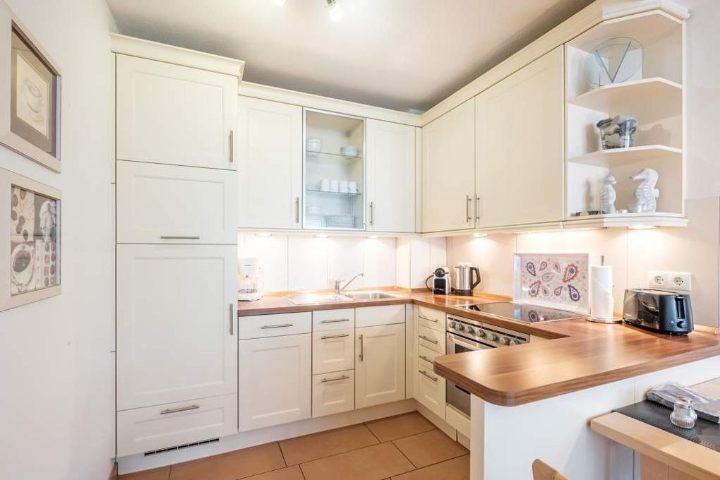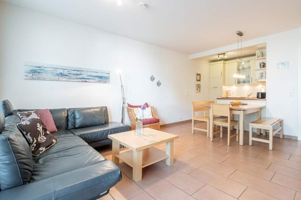 Das gemütliche 3-Zimmer-Appartement Nr. 11 liegt in der 1. Etage mit Balkon und ist für maximal 4 Personen ausgestattet. Diese Timmendorfer Strand Ferienwohnung verfügt über ein Wohnzimmer mit einer hochwertigen Couchgarnitur, Flachbild-TV, eine gemütliche Essecke und eine offene Einbauküche mit Ceranfeld, Backofen, einer Nespresso- sowie eine einfache Kaffeemaschine, Mikrowelle und Geschirrspüler, ein modernes Duschbad und eine geschmackvoll eingerichtete Diele.
