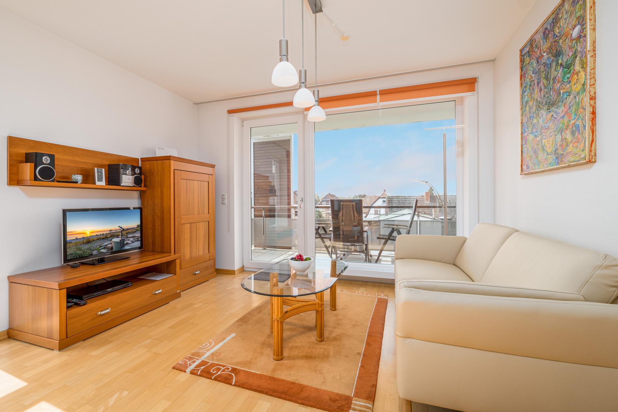 Um Ihnen einen erholsamen Schlaf zu garantieren, lassen sich die Schlafräume der Ferienwohnung verdunkeln. Der möblierte Balkon in Süd-Westlage rundet dieses schöne Urlaubsdomizil ab.