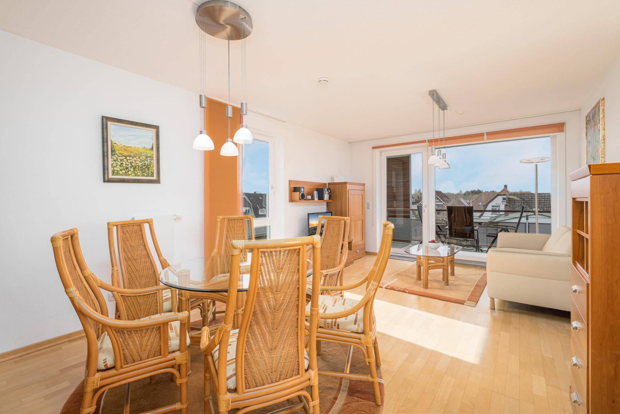 Das komfortabel eingerichtete Appartement Nr. 15 liegt in der 2. Etage mit 2 Balkonen und ist für maximal 2 Erwachsenen ausgestattet. Die Timmendorfer Strand Ferienwohnung verfügt über ein Wohnzimmer mit einer hochwertigen Couchgarnitur, Flachbild-TV, eine gemütliche Essecke, eine separate Küche mit Ceranfeld, Backofen und Geschirrspüler, sowie ein Duschbad und die Diele.
