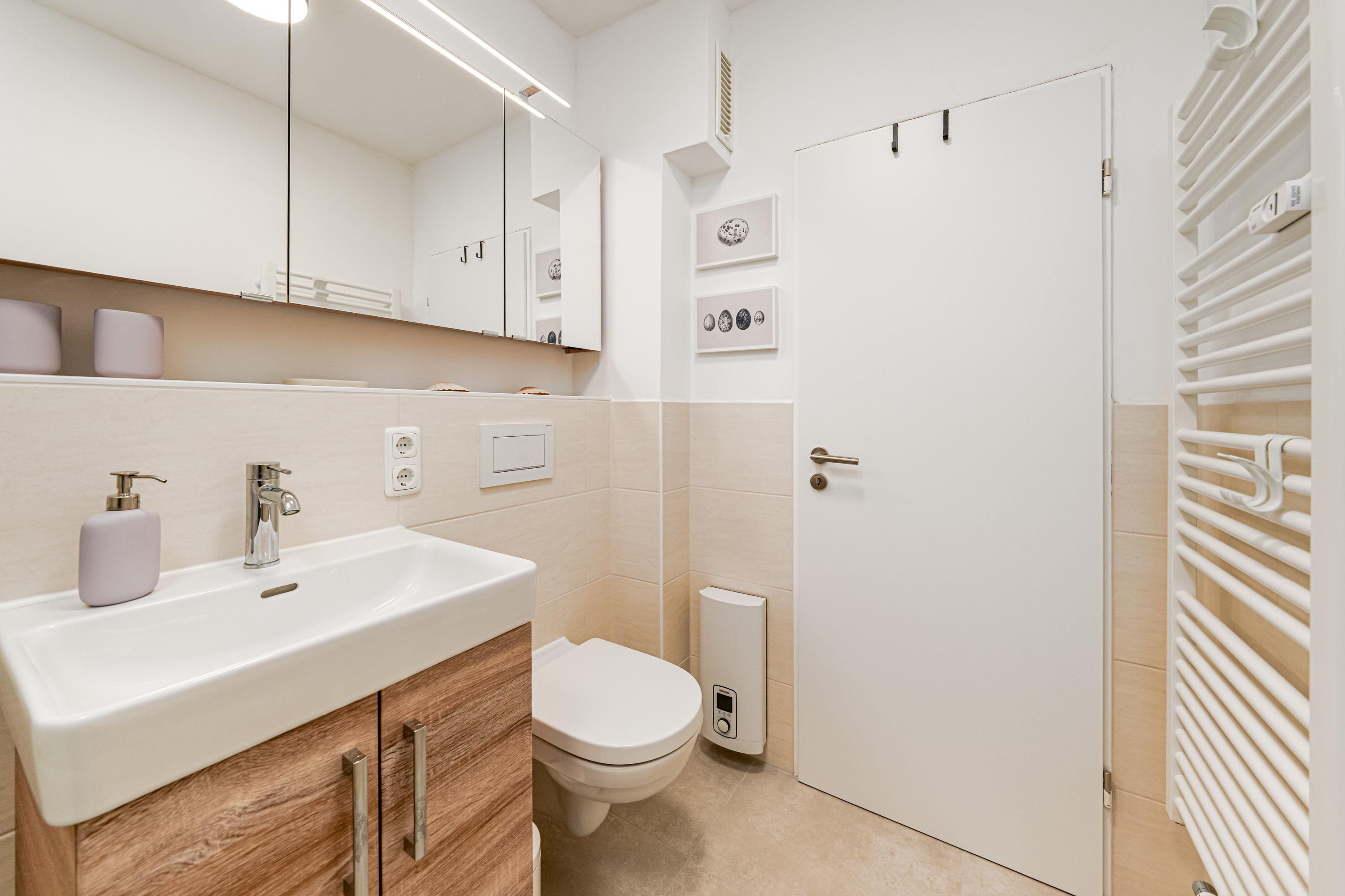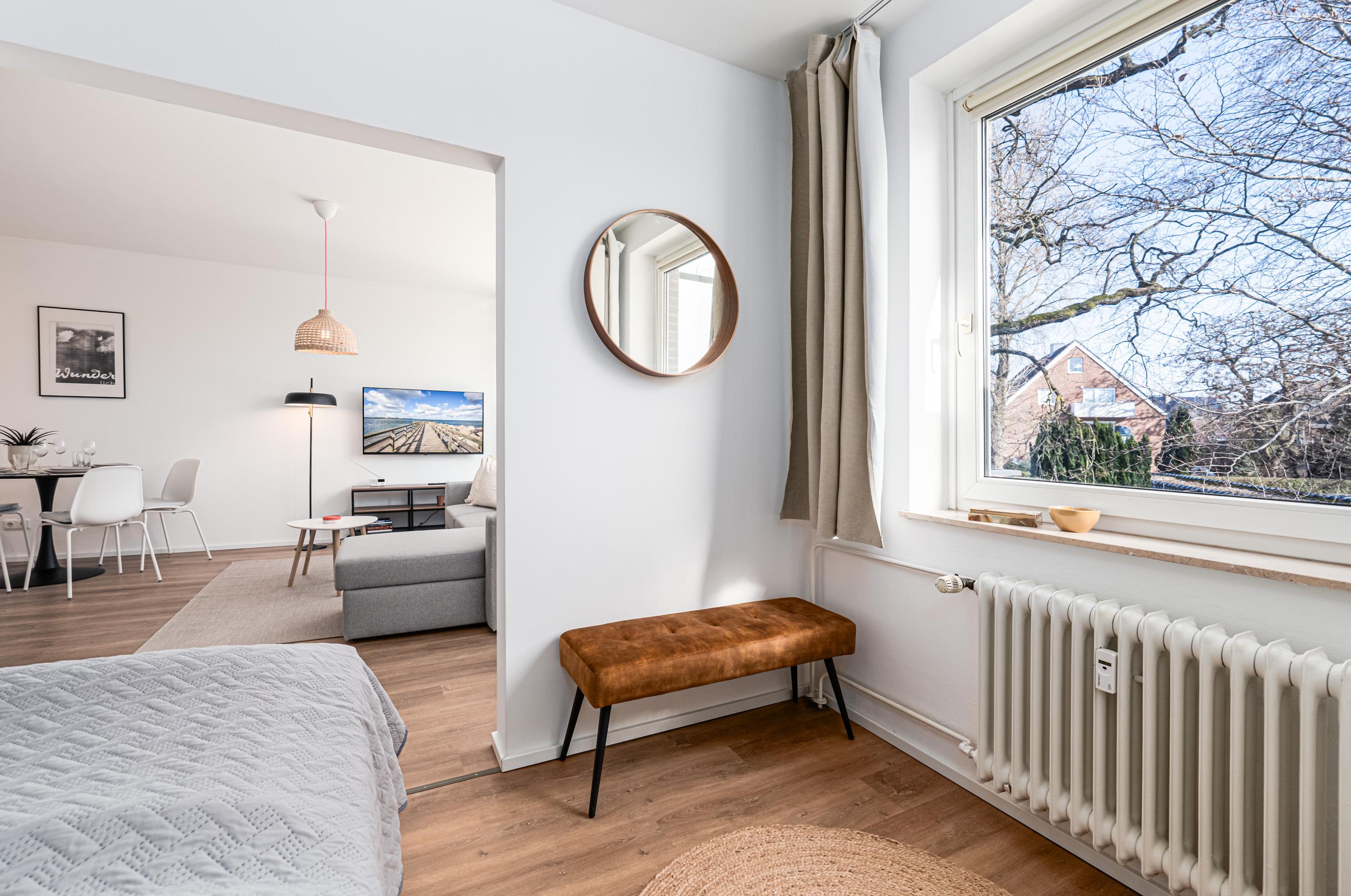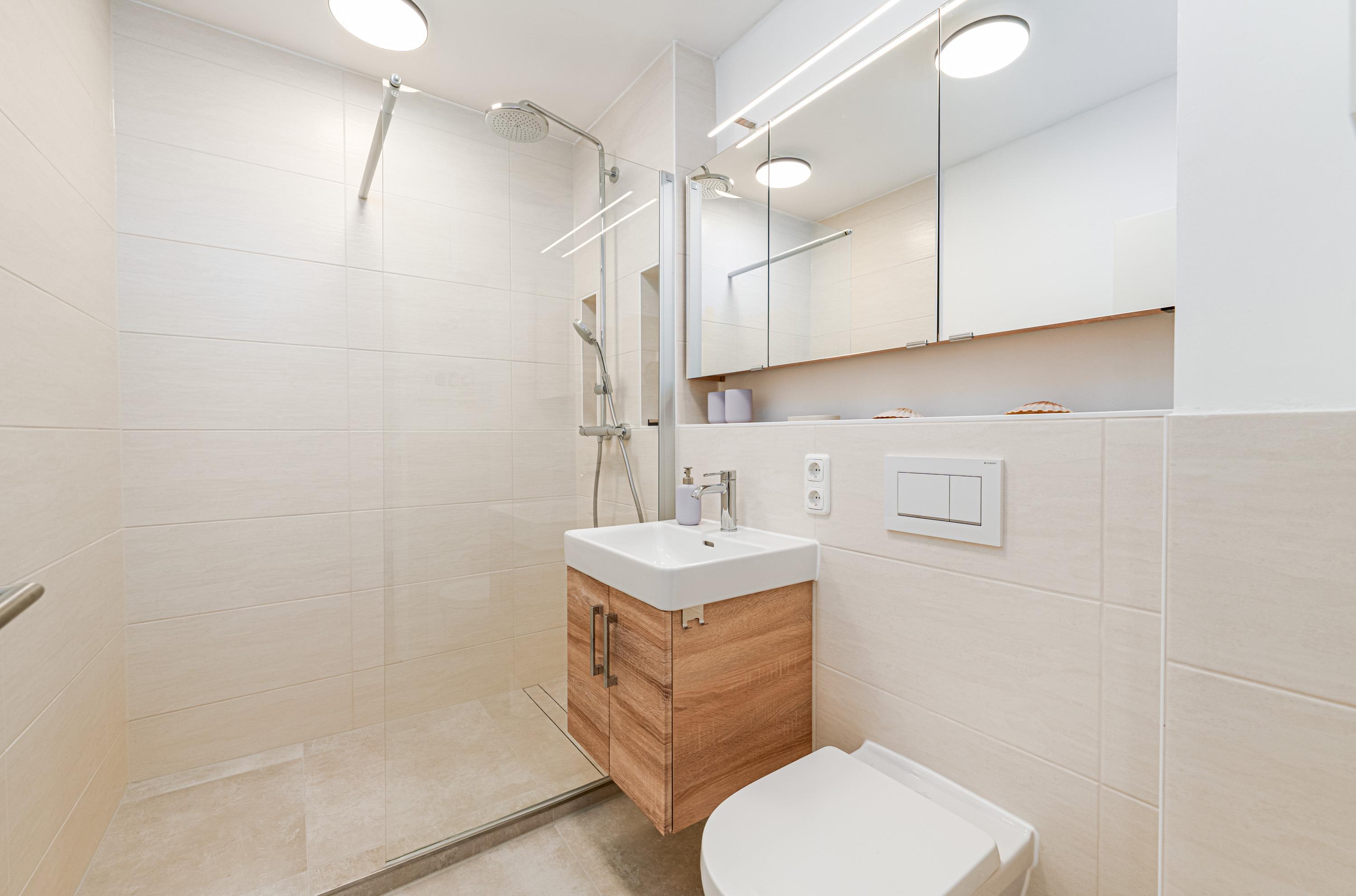 Das im Winter 2025/2026 komplett renovierte Feriendomizil "Wunderlich" präsentiert sich in einem modernen Design und offenem, lichtdurchfluteten Wohnkonzept. Sie betreten das Appartement und stehen im Flur, wo ein großer Einbauschrank viel Platz für mitgebrachte Jacken bieten. Von hier aus gelangen Sie in den hellen Wohnraum, der mit einem bequemen Schlafsofa und Smart-TV sowie einer voll ausgestatteten, integrierten Küche mit Essbereich komfortabel eingerichtet ist. Ob gemeinsame Kochsession's oder ausgiebige Spieleabende - hier ist für alle Urlaubsaktivitäten viel Platz!