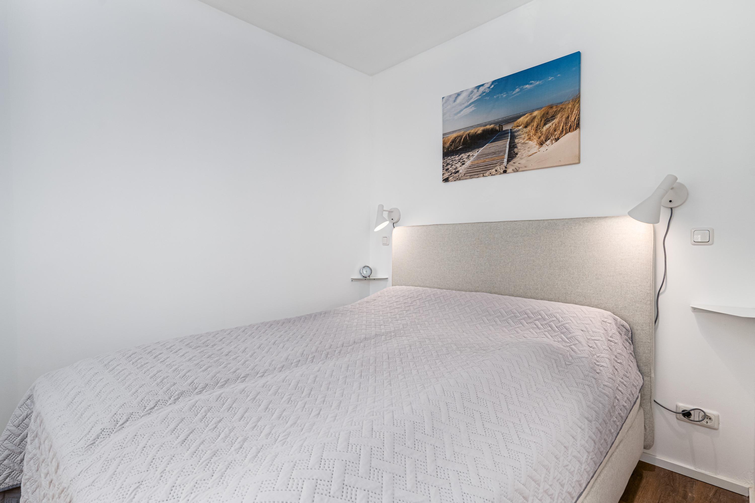 Für den erholsamen Schlaf im Urlaub steht Ihnen zu dem Schlafsofa im Wohnzimmer ein bequemes Doppelbett zur Verfügung. Für die mitgebrachten Kleidungsstücke ist hier auch ein Kleiderschrank vorhanden.