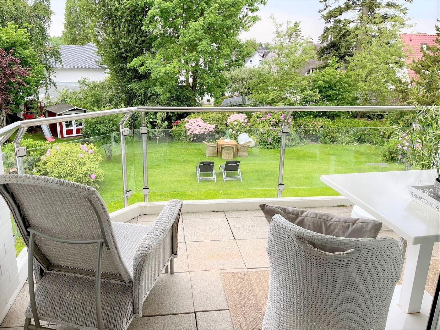 Gemütliches Apartment mit Balkon und Gartenblick am Timmendorfer Strand, nur 140 m vom Meer entfernt.