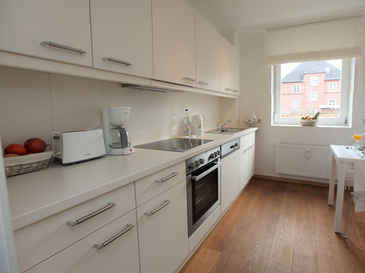Die zwei Schlafzimmer sind mit hochwertigen Boxspringbetten und Rollläden für optimalen Schlafkomfort ausgestattet. In einem der Schlafzimmer sorgt zudem ein zweiter TV für zusätzlichen Komfort. Die moderne Küche ist mit hochwertigen Geräten, einem Geschirrspüler sowie einem kleinen Sitzplatz ausgestattet – ideal für einen entspannten Start in den Tag oder eine schnelle Mahlzeit zwischendurch.