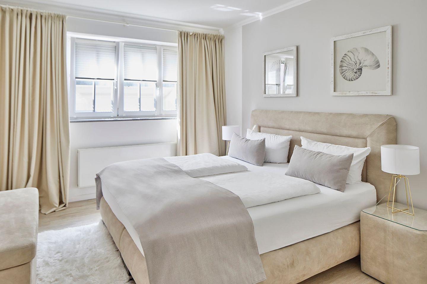 Das Wohnzimmer beinhaltet ein cremefarbenes Sofa und Sessel sowie neueste Smart-TV-Technik mit WLAN. In der separaten Küche können Sie schlemmen, kochen und sich Snacks für einen schönen Strandtag mit zeitgemäßem Küchenequipment zubereiten. Das ruhige Hauptschlafzimmer verfügt über ein hochwertiges Boxspringbett, verdunkelbare Gardinen und einen zweiten TV. Das zweite, kleine Schlafzimmer lädt mit zwei Einzelbetten zum Träumen ein. Das Bad mit Fenster wurde 2021 saniert und verfügt nun unter anderem über eine neue, große Dusche in einem schönen Ambiente. Eine Terrasse oder Austritt ist nicht vorhanden.