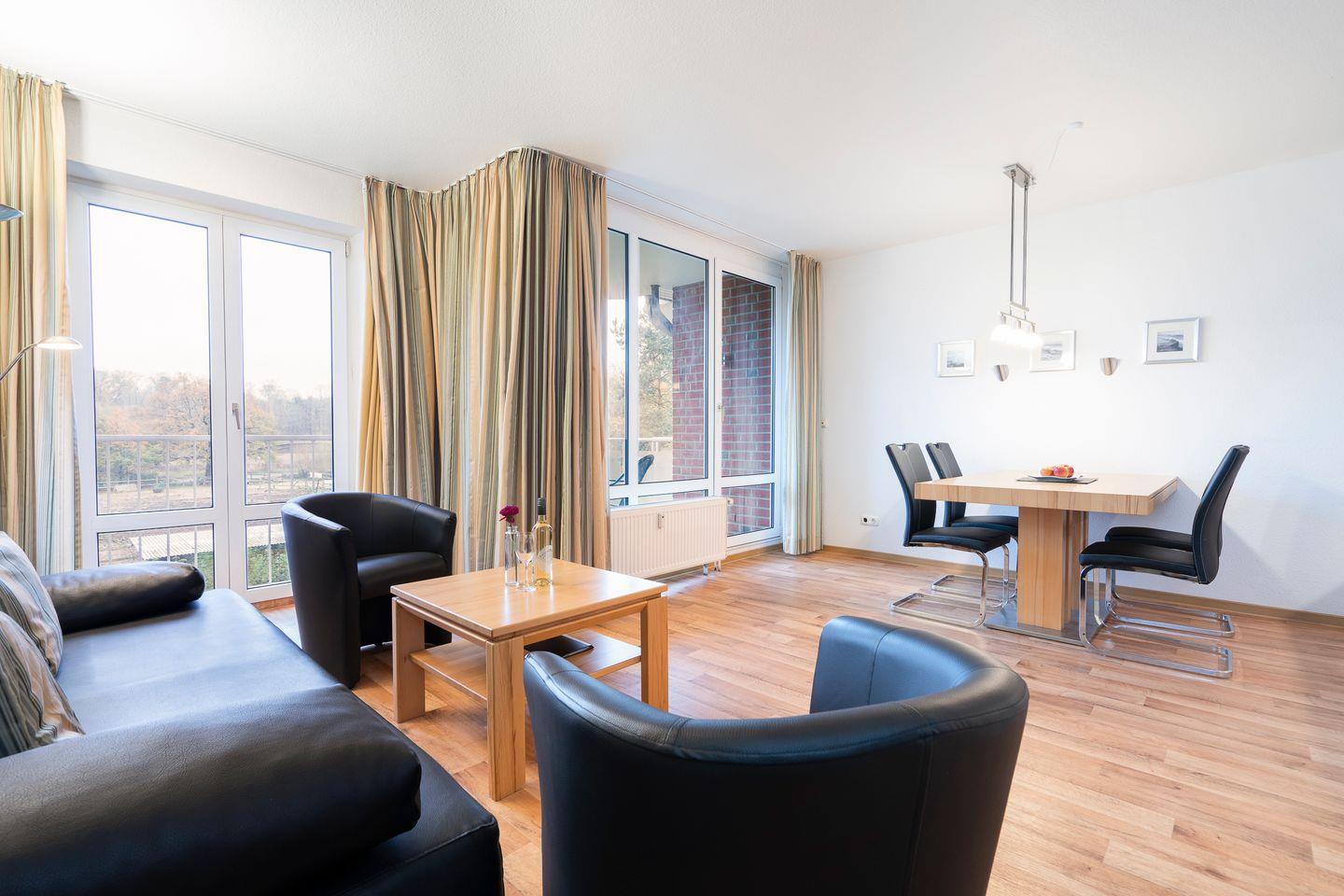 Gemütliche 2-Zimmer-Ferienwohnung mit Balkon und WLAN in Timmendorfer Strand, haustierfreundlich und mit Parkplatz im Wohnpark am Mühlenteich.