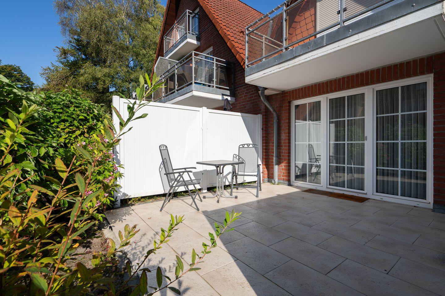 Strandnahe 2-Zimmer-Ferienwohnung mit großer Terrasse für 2-3 Personen im Gorch-Fock-Park im Ostseebad Timmendorfer Strand.