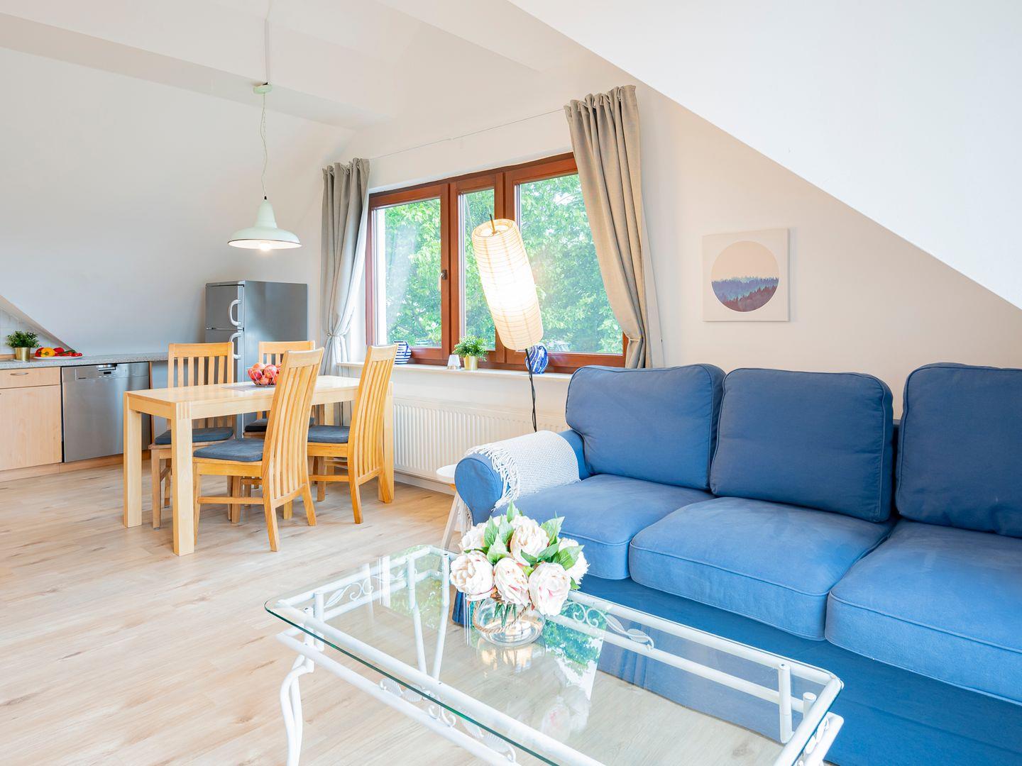 Die charmant eingerichtete 2-Zimmer-Ferienwohnung "Leichtigkeit" liegt in der 1. Etage und bietet mit einer Wohnfläche von ca. 50 m² ausreichend Raum und Gemütlichkeit für bis zu 4 Personen.