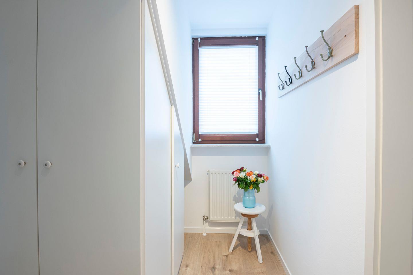 Im separierten Schlafzimmer steht Ihnen, ein Doppelbett (2x90x200cm) für einen erholsamen und entspannten Schlaf zur Verfügung. Auch ein Babybett findet Platz. Der Flur der Ferienwohnung bietet Ihnen eine Garderobe und eingebauten Kleiderschrank für Ihre Urlaubskleidung.