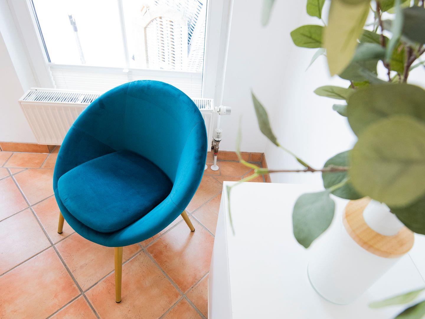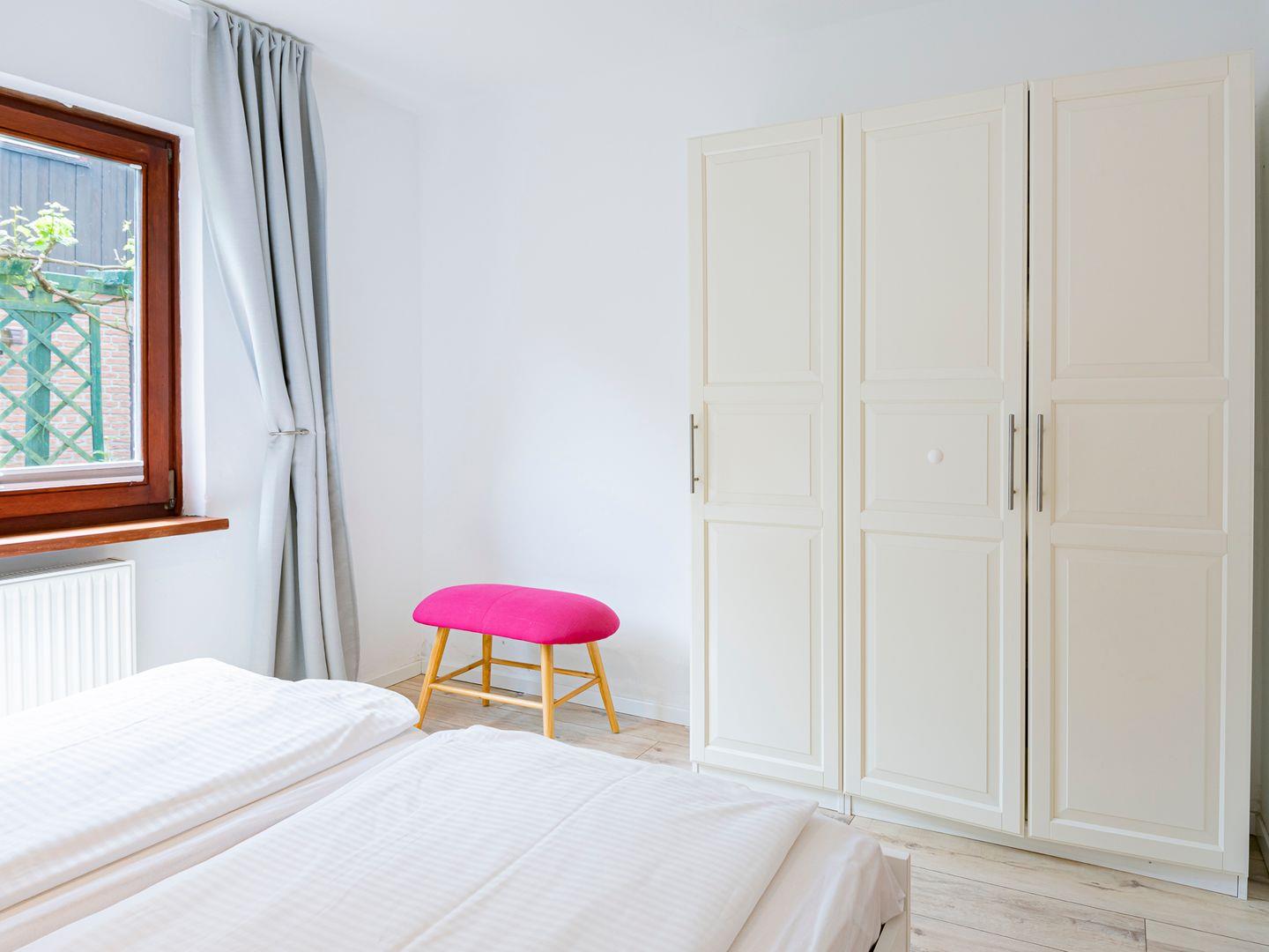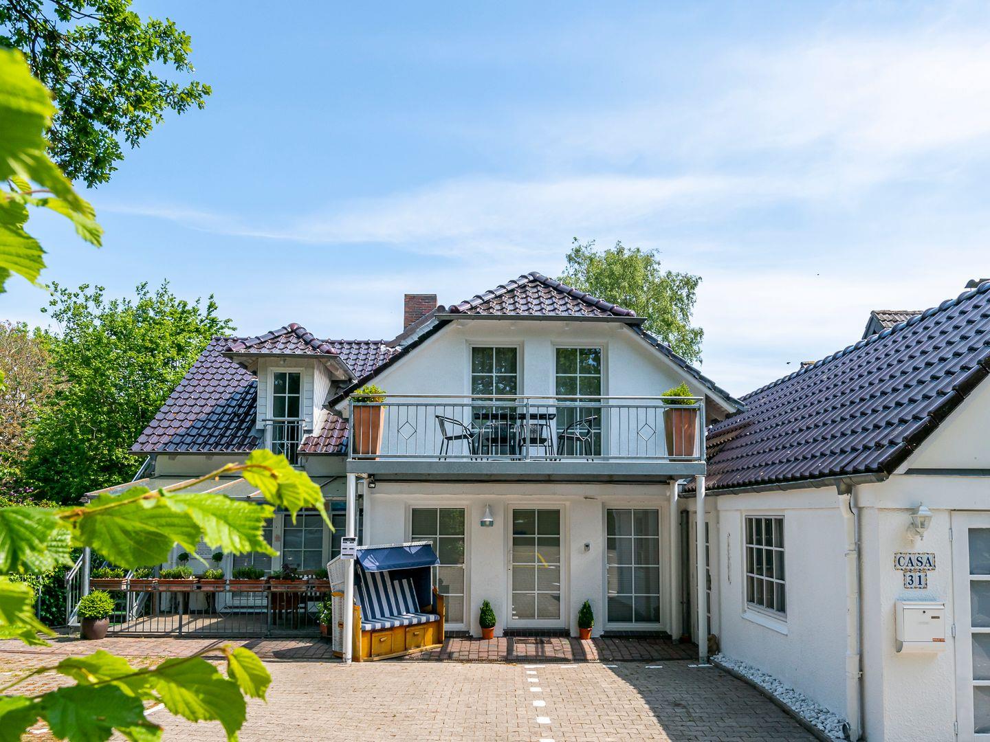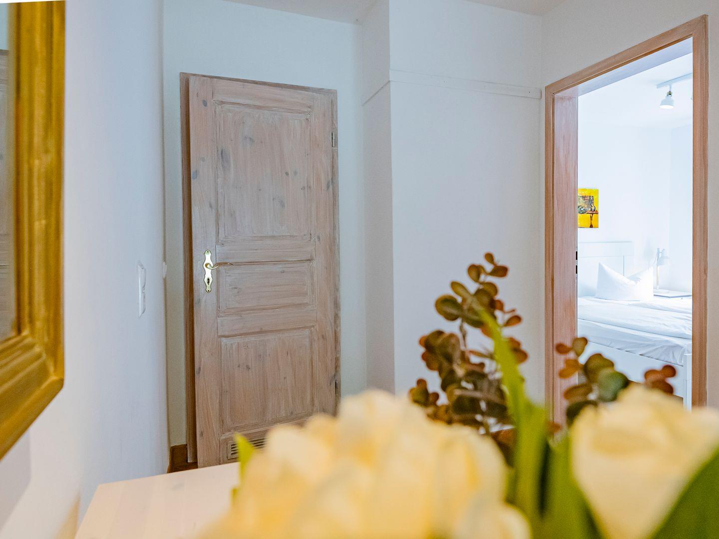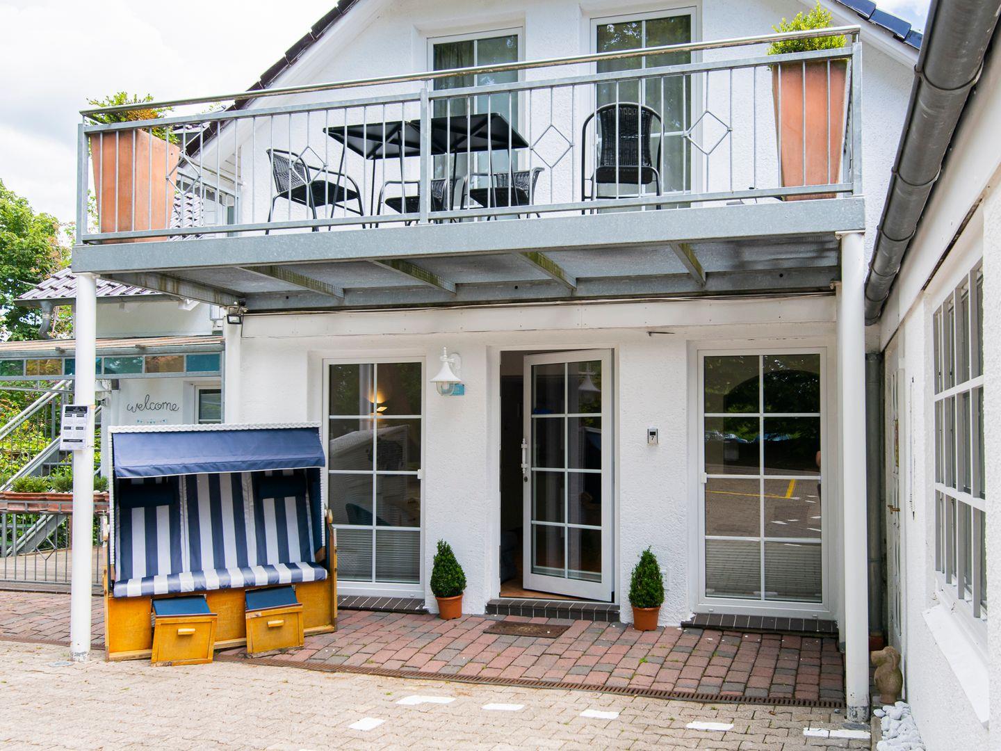 Die Ferienwohnung ist zur Vorderseite des Appartementhauses ausgerichtet und bietet einen angenehmen Ausblick. Im Eingangsbereich zur Ferienwohnung erwartet Sie ein charmantes Philosophenhäuschen, eine Art Strandkorb aus Holz, in dem Sie Ihren ersten Kaffee am Morgen genießen oder entspannt Ihre Urlaubstage ausklingen lassen können.