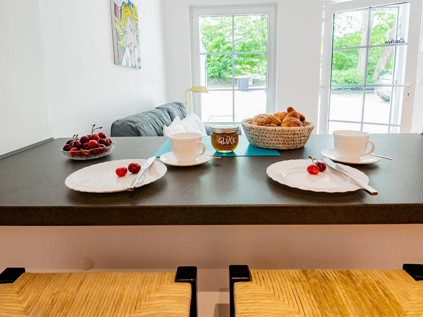 Die geschmackvoll und stilvoll eingerichtete 2-Zimmer-Erdgeschosswohnung "Lachen" präsentiert sich mit einer großzügigen Wohnfläche von etwa 45 m². Sie bietet Platz für bis zu 4 Personen und besticht durch ihren kombinierten Wohn- und Essbereich, das separate Schlafzimmer sowie das Badezimmer mit Dusche und WC. Die Wohnung vereint klare Gemütlichkeit und luftige Moderne, um eine wunderschöne Wohnatmosphäre zu schaffen.