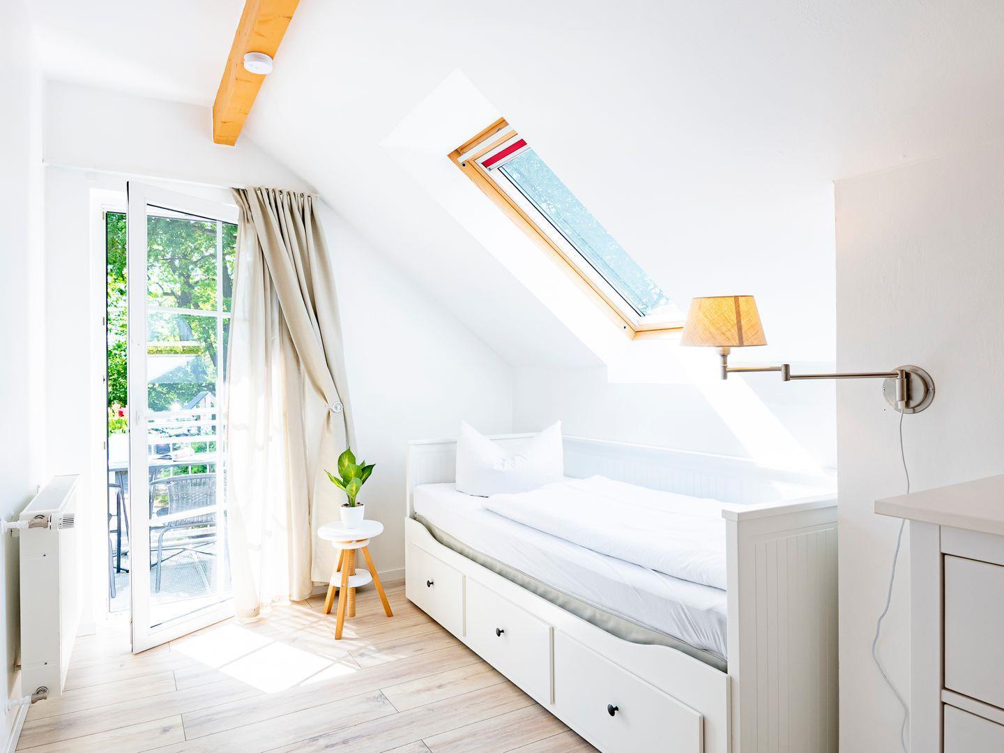 Die ansprechende 4-Zimmer-Ferienwohnung "Freude" befindet sich auf der ersten Etage und bietet einen eigenen, separaten Eingang über eine Treppe. Mit einer großzügigen Wohnfläche von ca. 60 m² und drei separaten Schlafzimmern ist diese Unterkunft für bis zu 6 Personen geeignet.
