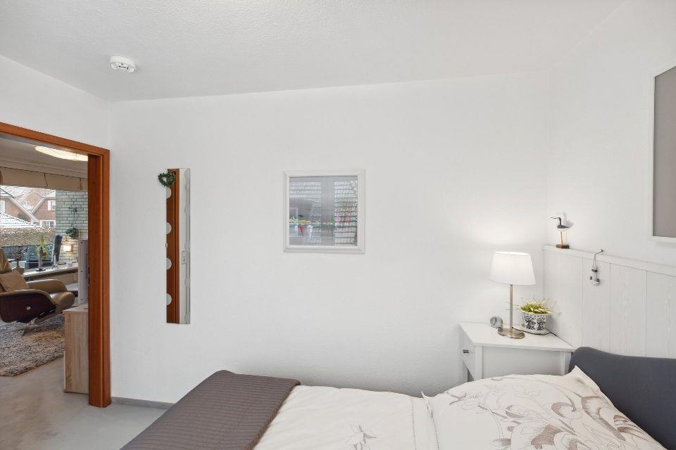 Die Wohnung verfügt über ein helles und geschmackvoll eingerichtetes Wohnzimmer, das zum Entspannen und Verweilen einlädt. Hier finden Sie eine bequeme Couch, auf der Sie sich nach einem langen Strandspaziergang ausstrecken können. Der angrenzende Essbereich bietet ausreichend Platz für gemeinsame Mahlzeiten oder Spieleabende. Von hier aus gelangen Sie auch auf den Balkon, wo Sie die frische Meeresluft und den Blick auf die Umgebung genießen können.