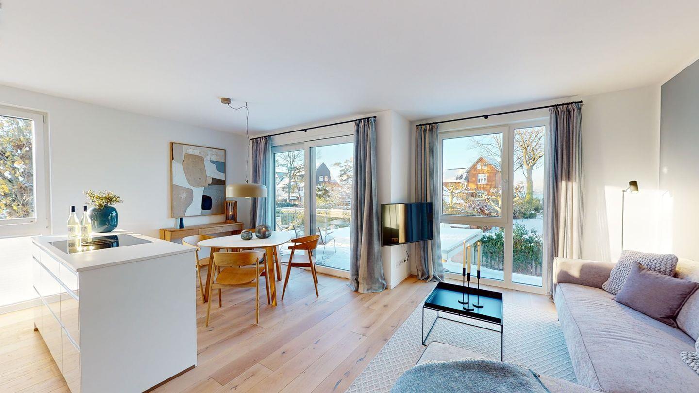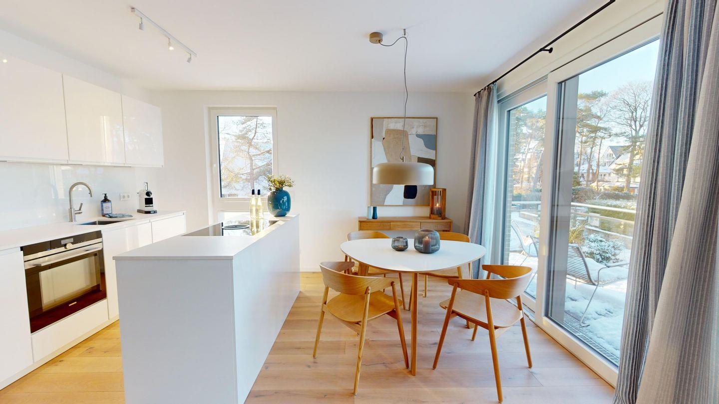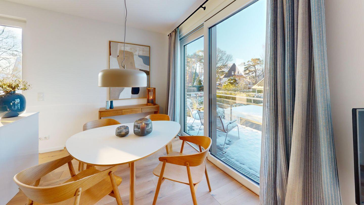 Moderne Ferienwohnung Strandglück in Niendorf, nur 20 m vom Ostseestrand mit Balkon und Meerblick.
