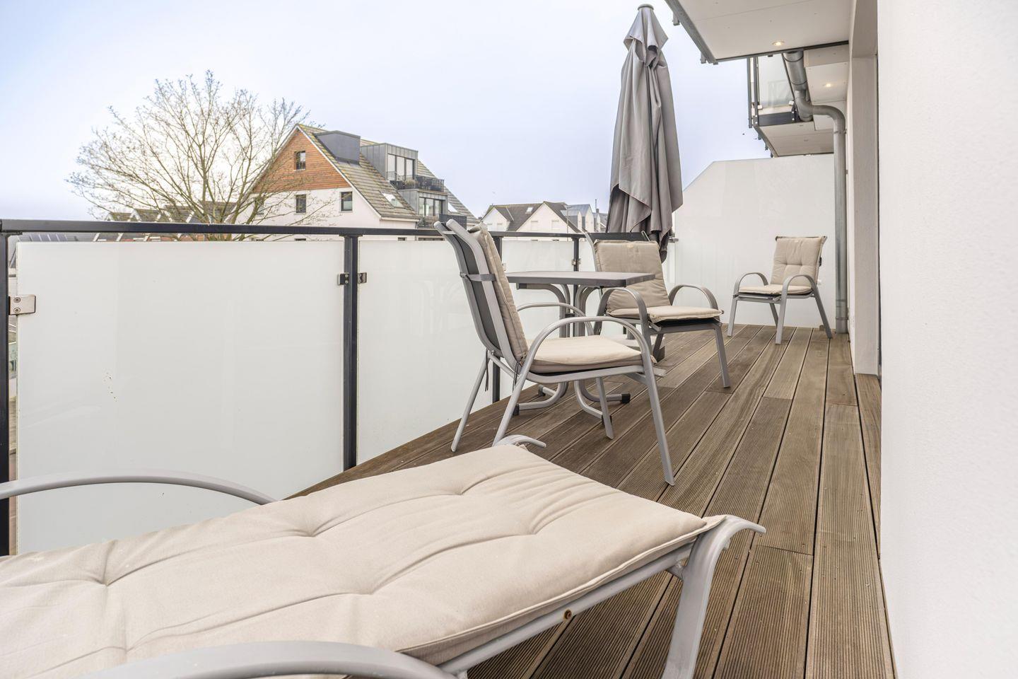 Von den großen Balkonen der Ferienwohnungen aus können Sie den Blick auf die Ostsee beim Frühstück oder Sonnenbaden genießen. An schönen Sommerabenden steht die gemütliche Couch in harter Konkurrenz zum großzügig geschnittenen Südbalkon, an dem man auch zu fortgeschrittener Tageszeit noch die wärmende Abendsonne genießen kann.