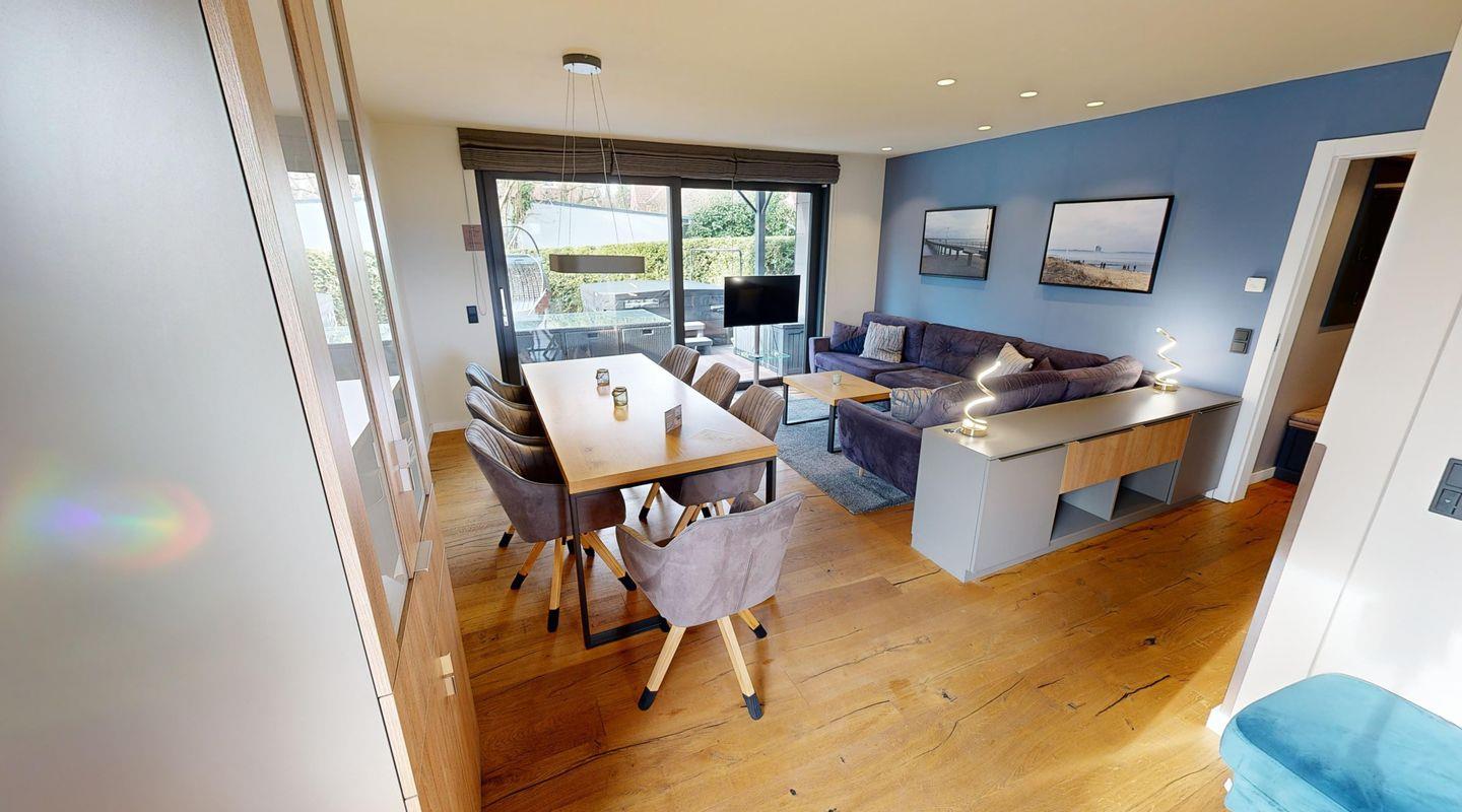 Die Ferienwohnung Meeresbrise in Timmendorfer Strand bietet 105 qm Komfort, Infrarotkabine und Terrasse für entspannte Urlaubstage.