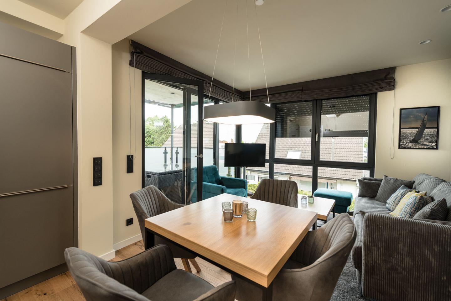 Entspannen Sie in der stilvollen Ferienwohnung Harmonie mit Balkon und Meerblick in Timmendorfer Strand.