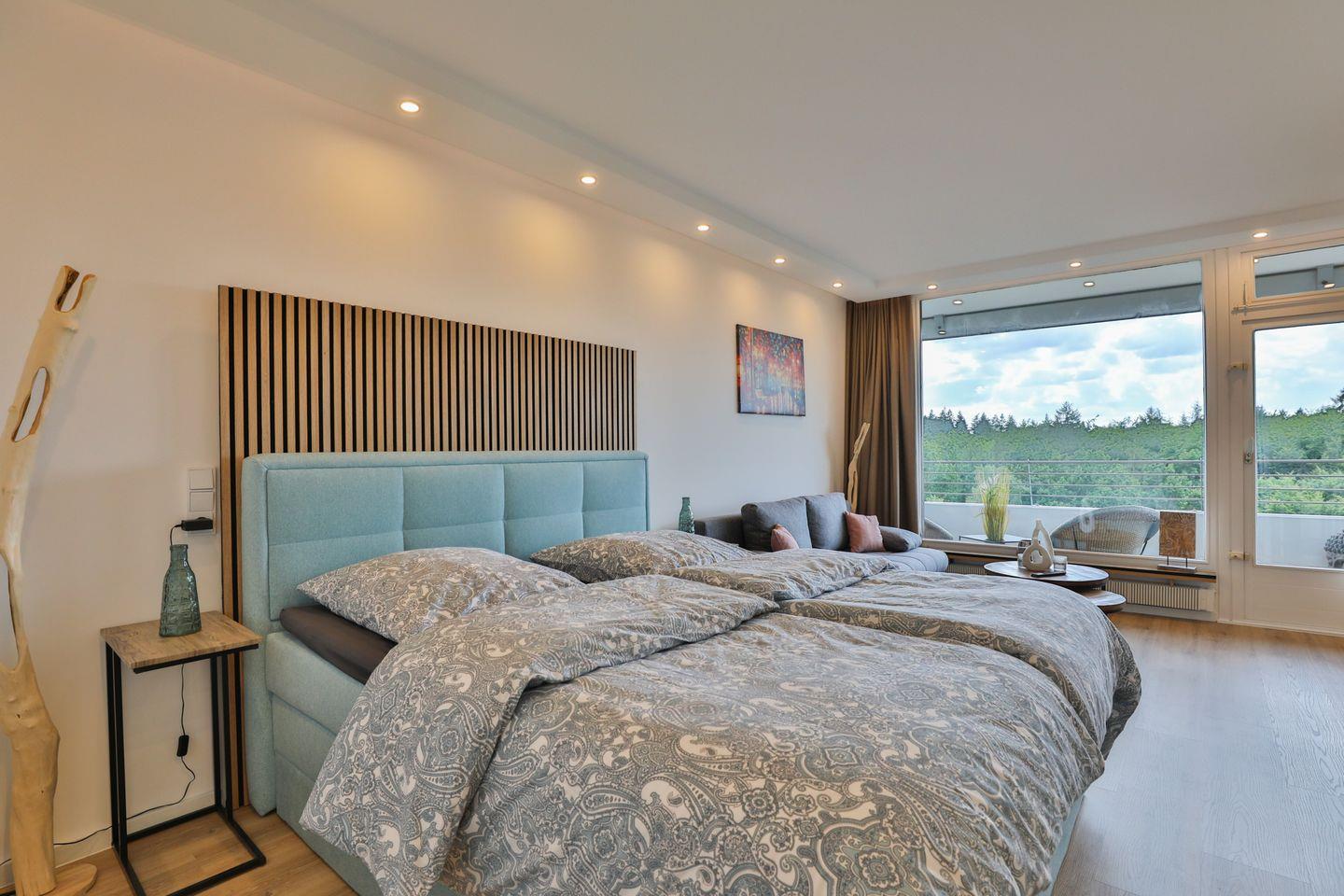 Durchflutet von Licht dank bodentiefer Fenster und mit einem beeindruckenden Weitblick über Wälder bis hin zum Meer bietet diese Ferienwohnung alles, was man für einen entspannten Ostseeurlaub zu zweit benötigt.