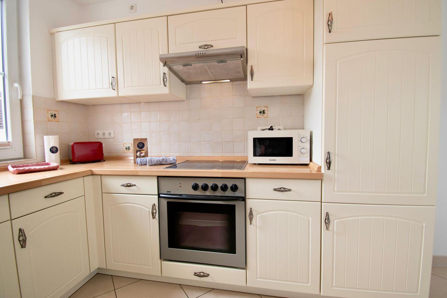 Bereiten Sie köstliche Mahlzeiten in der voll ausgestatteten Küche zu.