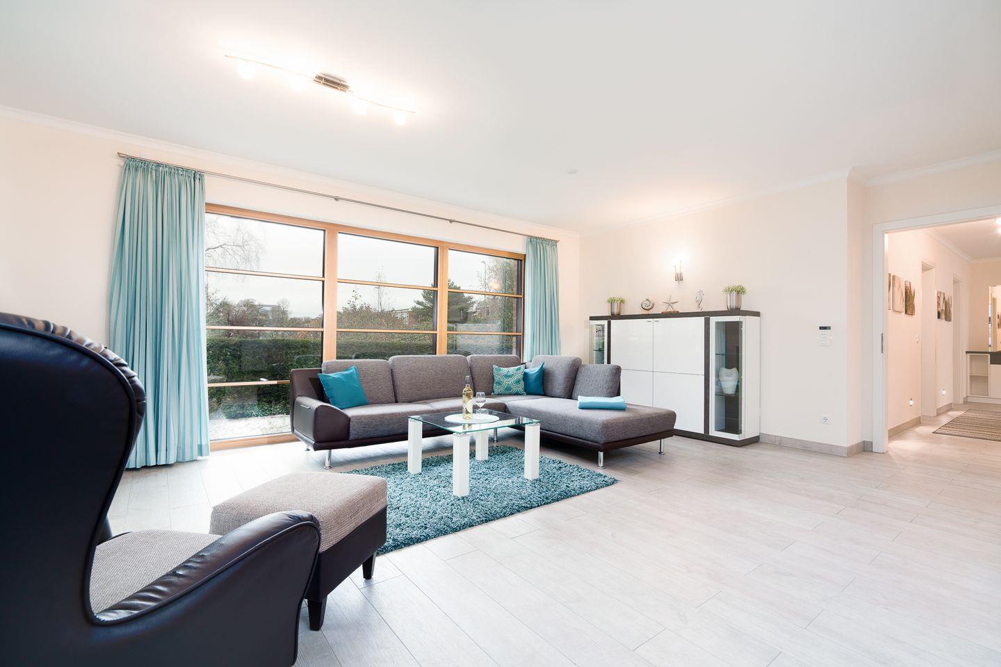 Entdeckt den perfekten Mix aus Komfort und Style in unserer modernen Ferienwohnung am Timmendorfer Strand. Schon beim Eintreten in den hellen, weitläufigen Eingangsbereich werdet Ihr den Raumkomfort spüren, der Euch durch Euren gesamten Aufenthalt begleitet. In der Wohnung gibt es kostenfreies WLAN (bei Störungen kein Anspruch auf Erstattung oder Ersatz). Der großzügige Wohn-/Essbereich, ausgestattet mit einer optional durch eine Schiebetür abtrennbaren Küche, sorgt für ein offenes und einladendes Raumgefühl. Elegante Farbkombinationen aus Dunkelbraun, Sand und Weiß mit Akzenten in Aquamarin, kombiniert mit edlen Hochglanzfronten, bieten ein modernes und wohnliches Ambiente, das zum Entspannen und Genießen einlädt.